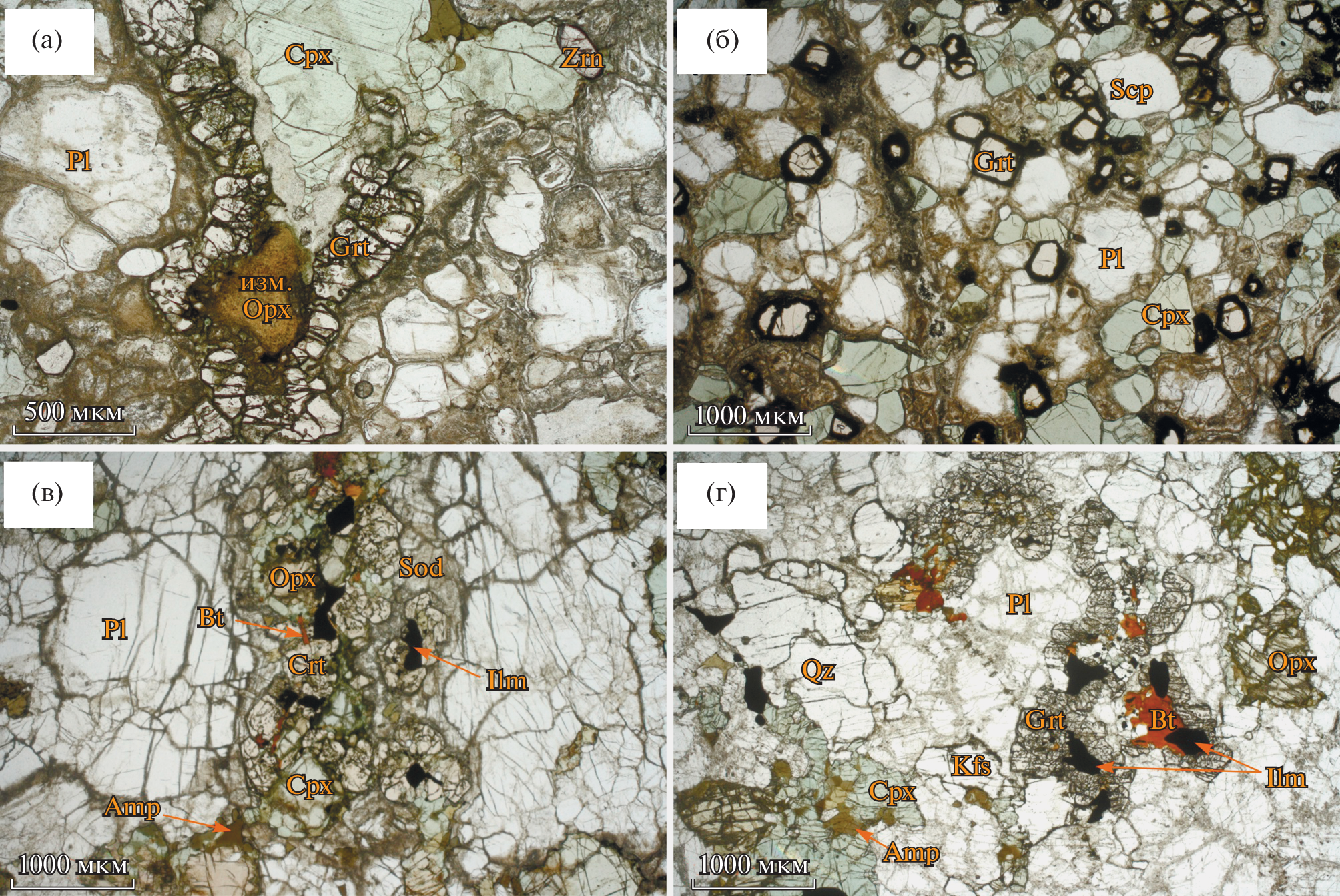 Upper Muna kimberlite field) showed that the crust at different levels is composed of pyroxene, garnet-pyroxene crystalline schists and garnet-pyroxene gneisses. Exsolution textures in pyroxenes and amphiboles, granat rims around grains of ilmenite and pyroxenes indicate that the mineral associations of crystalline schists were formed during cooling at constant pressure. Р–Т equilibrium parameters indicate that garnet-pyroxene crystalline schists are present in the middle crust (P = 7–8 kbar), while garnet-pyroxene gneisses can be considered as rocks of the lower crust (P = 9–10.1 kbar). For the first time, sodalite was found in xenoliths of crystalline schists, which indicates the presence of brines with a high concentration of NaCl at the final stages of rock cooling. The determination of the U–Pb age of zircons testifies to the Neoarchean (2.7 Ma) tectono-thermal event, accompanied by the melting of the crust. In the garnet–pyroxene gneisses, the 1.9 stage is weakly manifistated. The obtained data confirm the earlier conclusion about the vertical and lateral heterogeneity of the crust of the Yakutsk diamondiferous province and the absence of dependence between the degree of crust reworking and spatial location relative to the main collision zones of the Siberian craton.