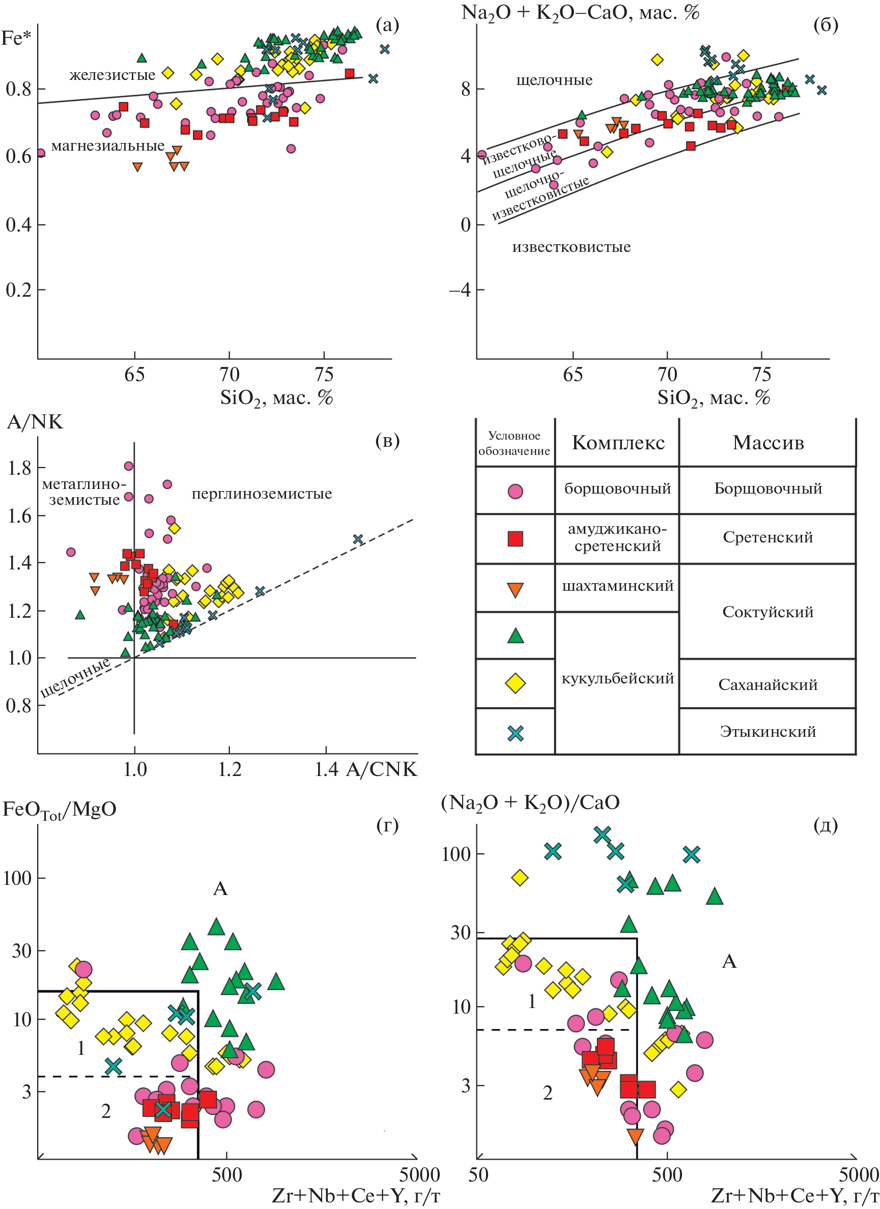 - Whalen J.B., Currie K.L., Chappell B.W. A-type granites: geochemical characteristics, discrimination and petrogenesis // Contrib. Mineral. Petrol. 1987. V. 95. P. 407–419.