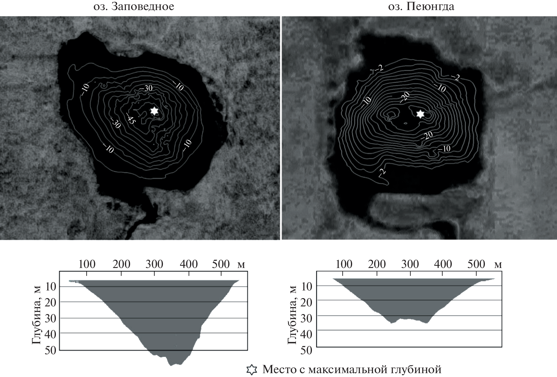 The bottom morphology and thickness of bottom sediments of lakes Zapovednoye and Peyungda were studied by echo-sounding and seismic reflection profiling. The lakes are located in 60 km and 50 km from inferred explosion epicenter of “Tunguska event 1908”, respectively. We showed that both lakes have circular shape and funnel-like morphology with 60 and 34 m maximum water-depth, respectively, close to their geometrical centers. The shape of the lake is similar to famous Lake Cheko which is believed to be a secondary impact crater for Tunguska event of 1908. The shape of Lake Cheko was suggested to be highly unusual that was one of arguments to support the hypothesis of impact origin of Lake Cheko. We have shown that lakes Zapovednoye and Peyungda are examples of funnel-like deep lakes, and the age of both lakes exceeds are two thousand years. Therefore, we assume that all three lakes are most likely of karst origin. The similarity of the shape of the three reservoirs and their location in the riverbeds indicate the similar origin and testify against the hypothesis of the impact origin of Lake Cheko in 1908.