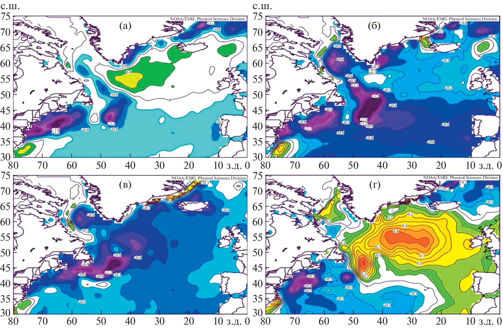 - Curry R.G., McCarthy M.S. Ocean Gyre Circulation Changes Assosiated with the North Atlantic Oscillation // Journal of Physical Oceanography. 2001. V. 31. № 12. P. 3374–3400.
