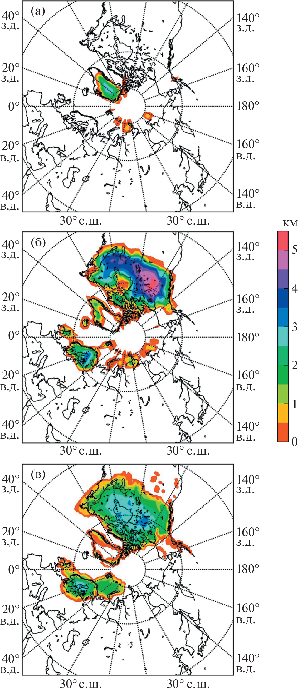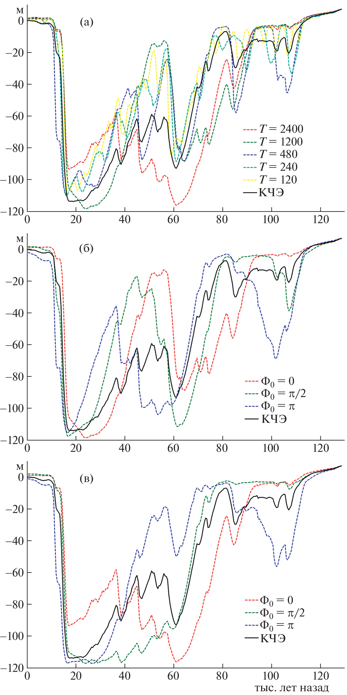 Проведены ансамблевые (с учетом неопределенности климатических палеореконструкций) численные эксперименты с моделью динамики ледовых щитов для последнего ледникового цикла (128 тыс. лет). Модель в целом удовлетворительно воспроизводит пространственное распределение ледовых щитов и высоты их куполов в Северном полушарии, а также соответствующие изменения уровня океана. При возмущении с достаточно большой амплитудой палеоклиматических данных в модели выявляются существенные различия результатов моделирования ледовых щитов Северного полушария от полученных для исходной палеореконструкции, в том числе для периода последнего ледникового максимума и для временного интервала 58–51 тыс. лет назад (начальная часть MIS3). Согласно модельным результатам, неопределенность глобальных реконструкций для последнего ледникового цикла составляет 2°С, что согласуется с имеющимися оценками.