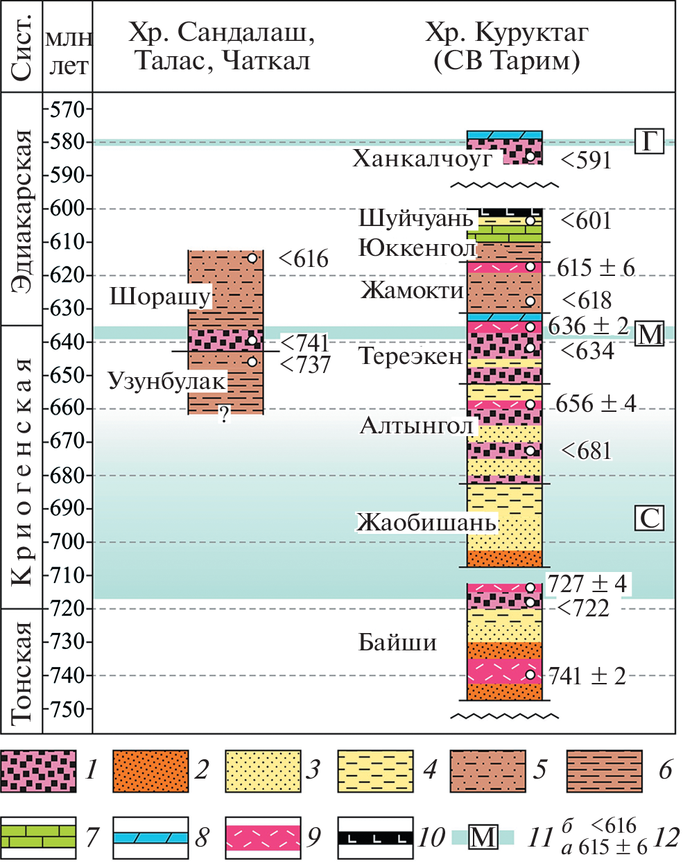 - Xu B., Xiao S.H., Zou H.B., Chen Y., Li Z.X., Song B., Liu D.Y., Zhou C.M., Yuan X.L. SHRIMP zircon U–Pb age constraints on Neoproterozoic Quruqtagh diamictites in NW China // Precambrian Res. 2009. V. 168. P. 247–258.