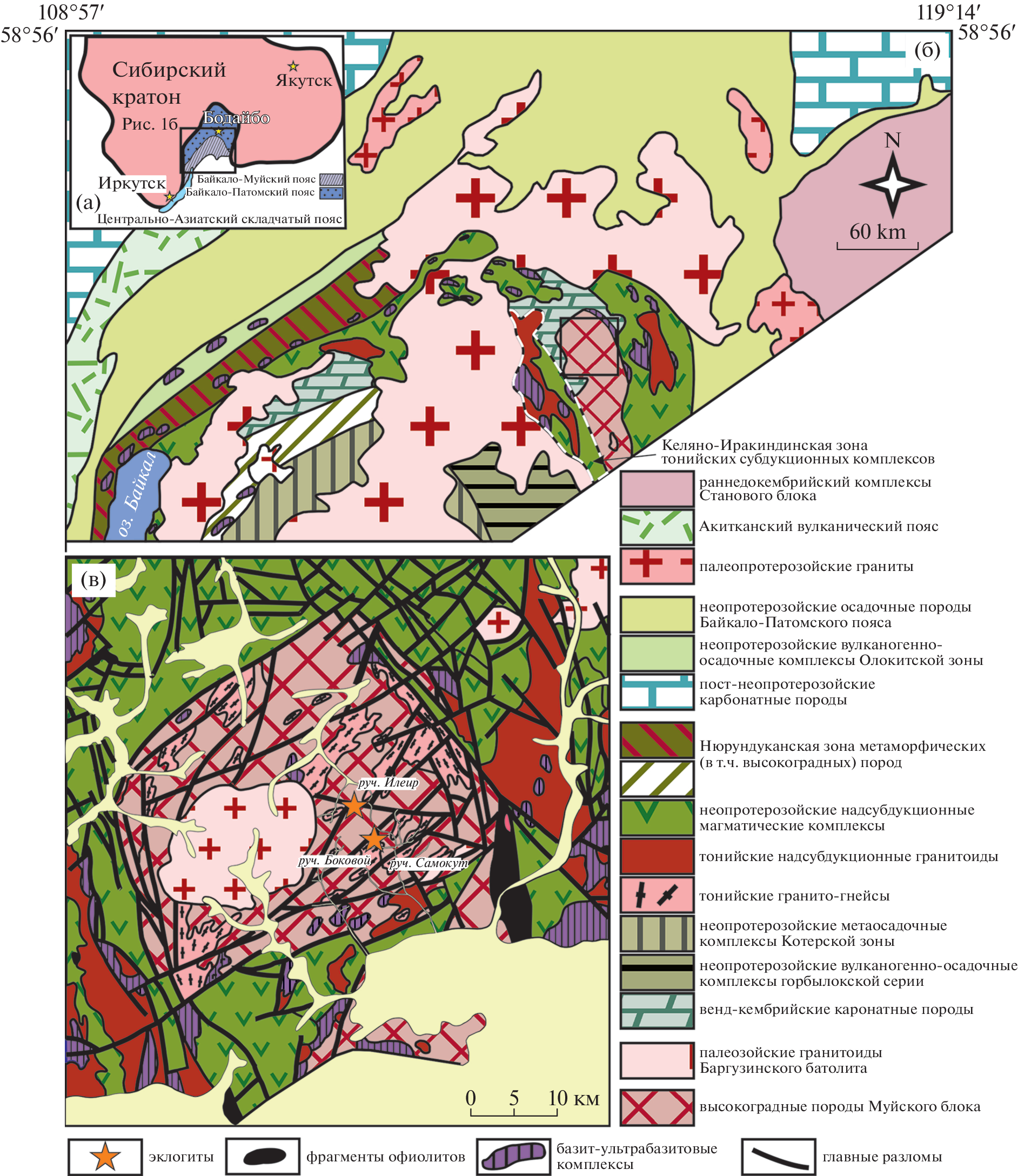 - Skuzovatov S.Yu., Shatsky V.S., Wang K.-L. Continental subduction during arc-microcontinent collision in the southern Siberian craton: constraints on protoliths and metamorphic evolution of the North Muya complex eclogites (Eastern Siberia) // Lithos. 2019. V. 342–343. P. 76–96.