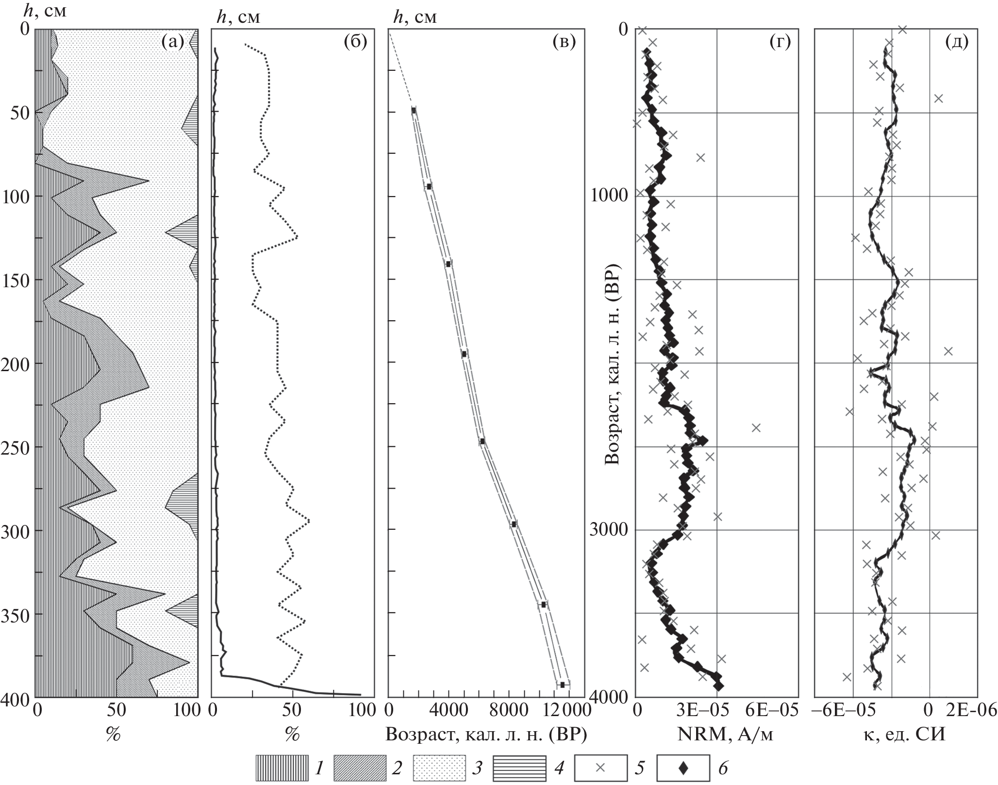 The paper presents the results of microprobe, paleomagnetic and rock magnetic studies on peats from the Tyapka peat section (Khabarovsk region) formed 4 thousand years. Alternating field demagnetization of peats yielded a horizon of 57–109 cm (1833–3083 cal. BP) with negative inclination values of the magnetization vector, which corresponds to the geomagnetic Etrussia excursion. Obtaining relative paleointensity estimates for peats was pioneered, which are consistent with the literature archeomagnetic data for the western part of Eurasia. It was found that the Etrussia excursion took place against the background of increased values of the Earth’s magnetic field, and its duration was ~ 1200 years.