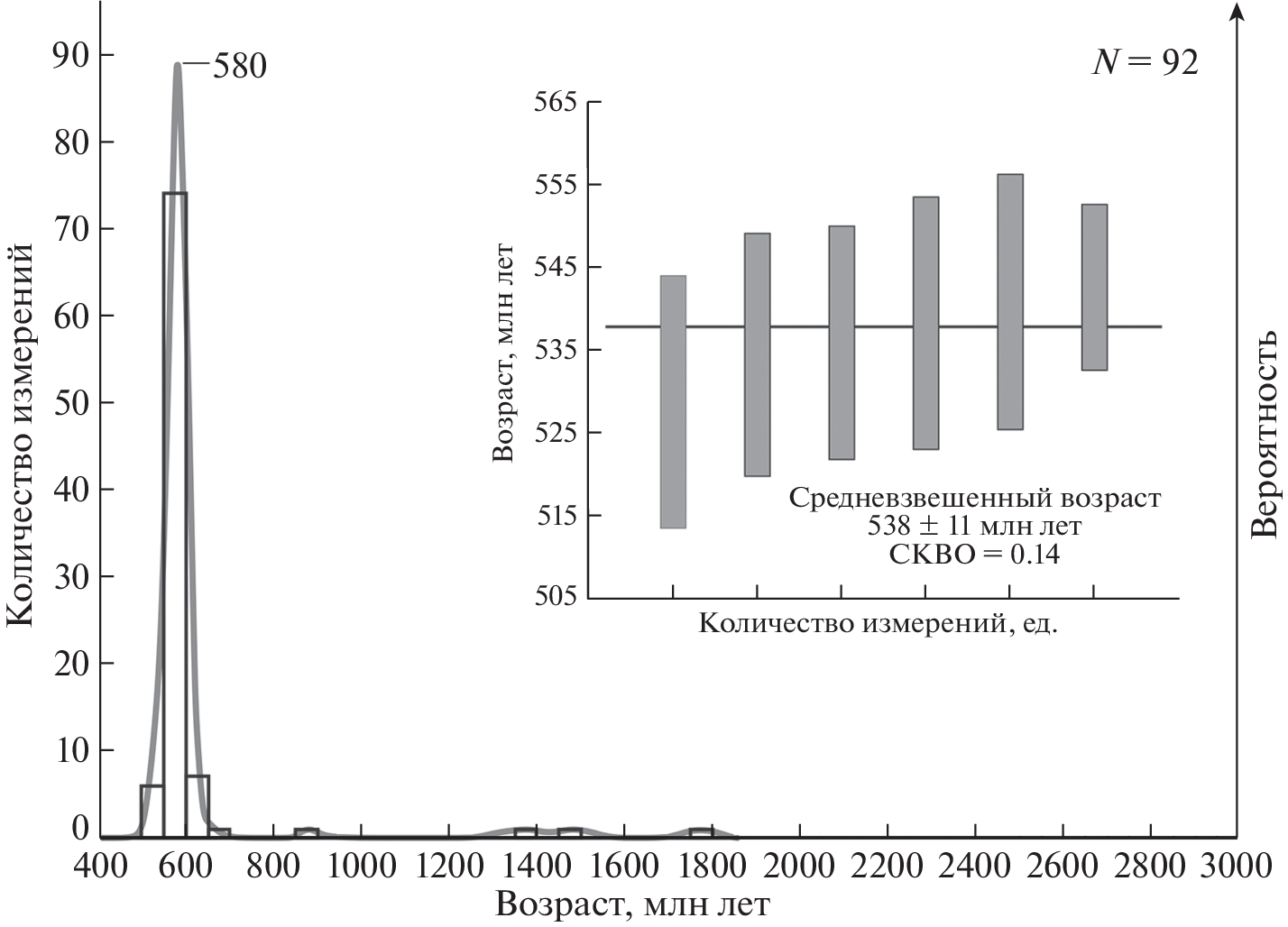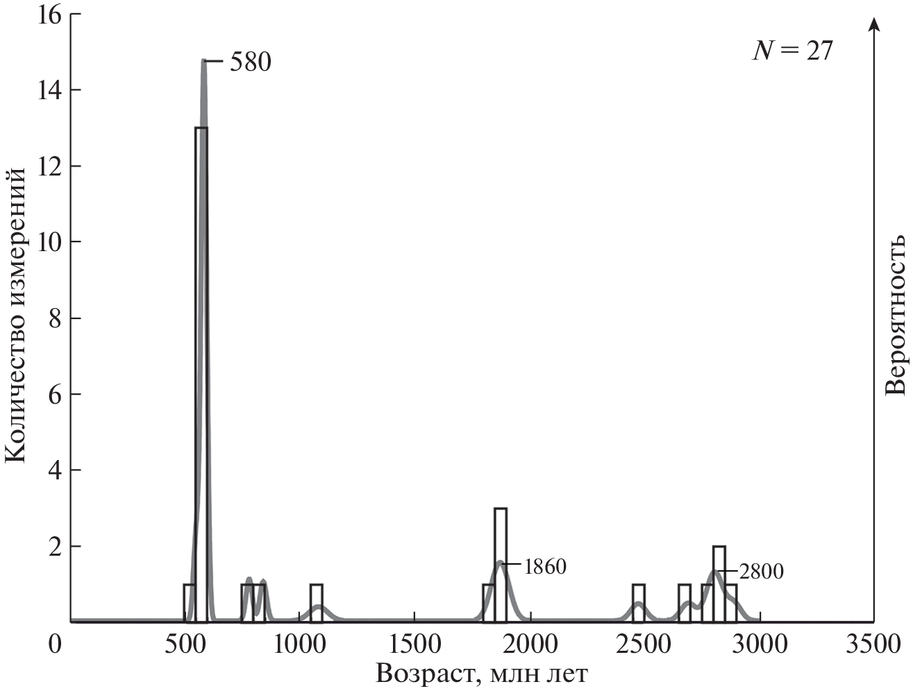 Получена оценка времени накопления (530–520 млн лет) терегтигской свиты юга Тувы на основе результатов U–Pb-датирования зерен детритового циркона из терригенных и Sr-хемостратиграфии карбонатных пород. Показано, что основным источником поступления обломочного материала являлись гранитоиды с возрастом 580 млн лет. Присутствие представительной популяции зерен детритового циркона докембрийского возраста указывает на накопление отложений терегтигской свиты в пределах блока континентальной коры с длительной историей развития. В составе эродируемой суши при накоплении грубозернистых пород терегтигской свиты находились так же породы Агардагского комплекса офиолитов, о чем свидетельствуют многочисленные неокатанные обломки оливинов, пироксенов и хромшпинелидов в матриксе конгломератов.