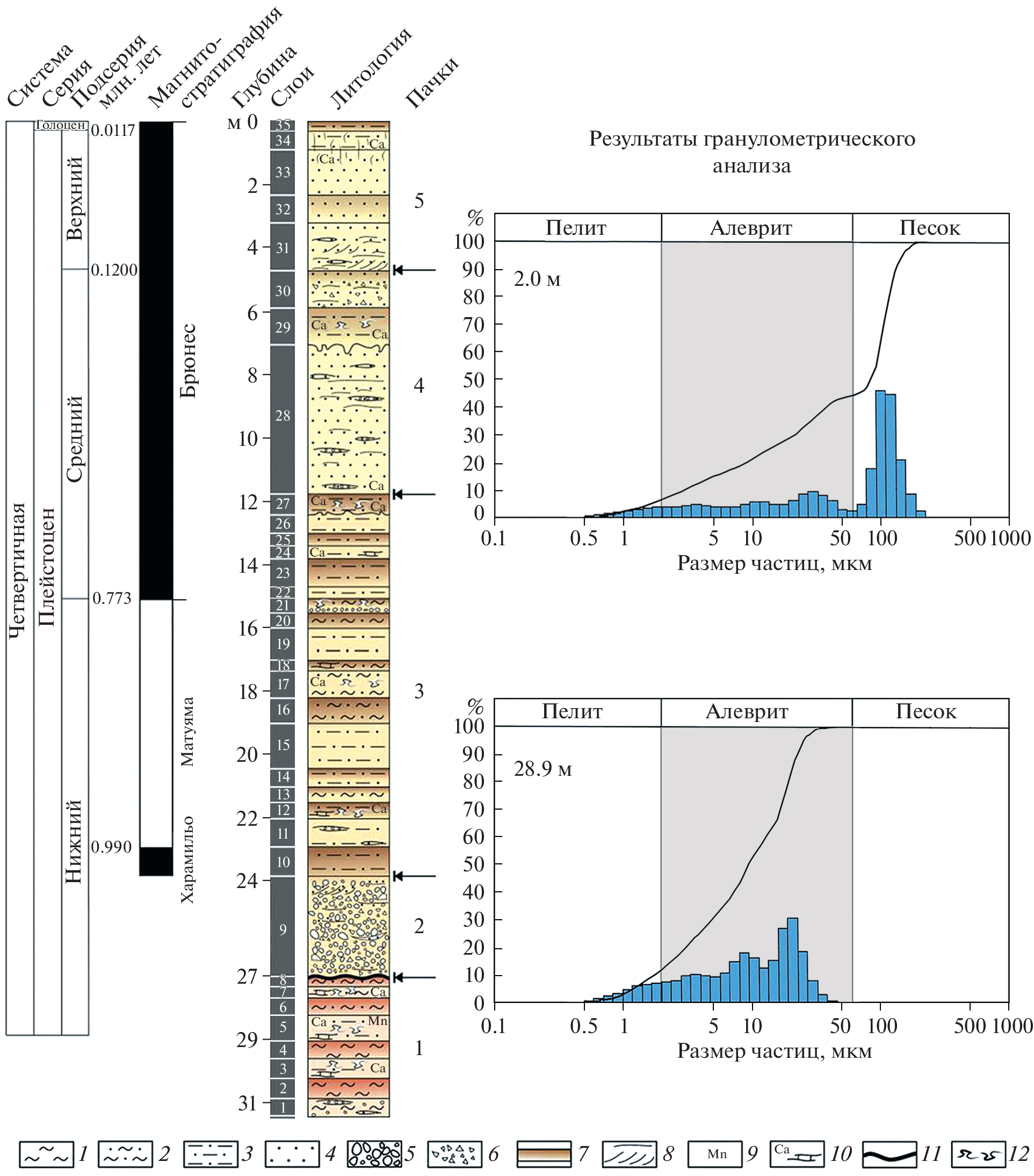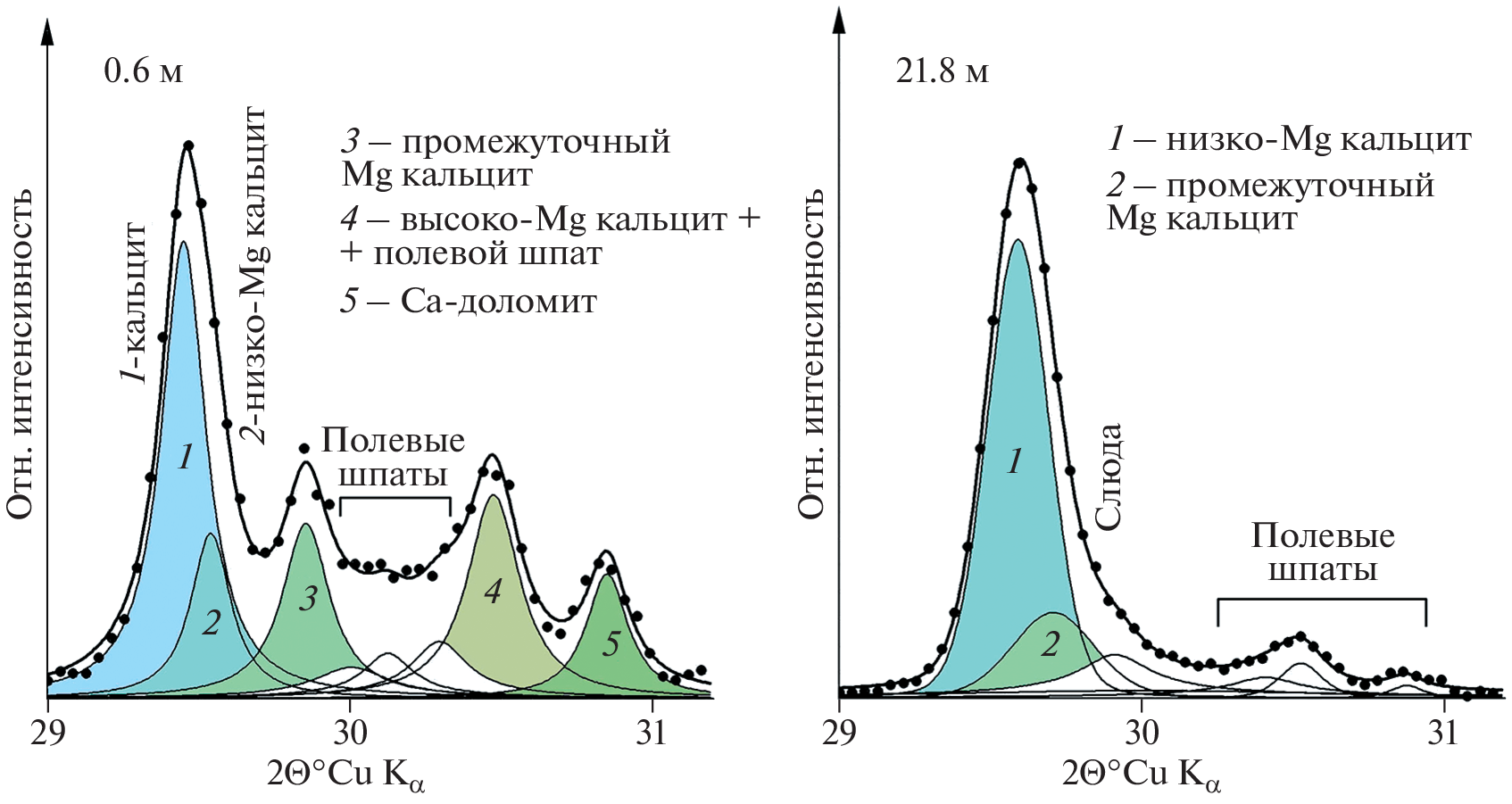 В работе представлены результаты изучения вещественного состава четвертичных субаэрально-склоновых отложений нового опорного разреза Улан-Жалга (Западное Забайкалье) мощностью около 30 м. Методы исследования – рентгеновская дифрактометрия (XRD), ИК‑спектроскопия, лазерная гранулометрия, элементный анализ. В минеральном составе изученных отложений установлены кварц, полевые шпаты, глинистые минералы, карбонаты, гематит, следы амфибола. Впервые для субаэрального разреза показано, что состав и структура карбонатных минералов являются индикатором климатических изменений в плейстоцене и голоцене. Для корректной идентификации и определения количественных соотношений карбонатов применялся метод моделирования их XRD-профилей функцией Пирсона VII. Установлено, что в строении разреза участвуют две различающиеся по литолого-минералогическим характеристикам мощные толщи субаэральных отложений, соответствующие двум крупным этапам осадконакопления. Нижняя толща образовалась в условиях умеренной ветровой деятельности и сравнительно высокой влагообеспеченности, о чем свидетельствуют широкое развитие почвенных горизонтов и присутствие низко-Mg-карбонатов. Верхняя толща, сформировавшаяся в более холодных и сухих условиях с повышенной динамикой эоловых процессов, характеризуется наличием кальцита, высоко-Mg кальцита и Ca-избыточного доломита.