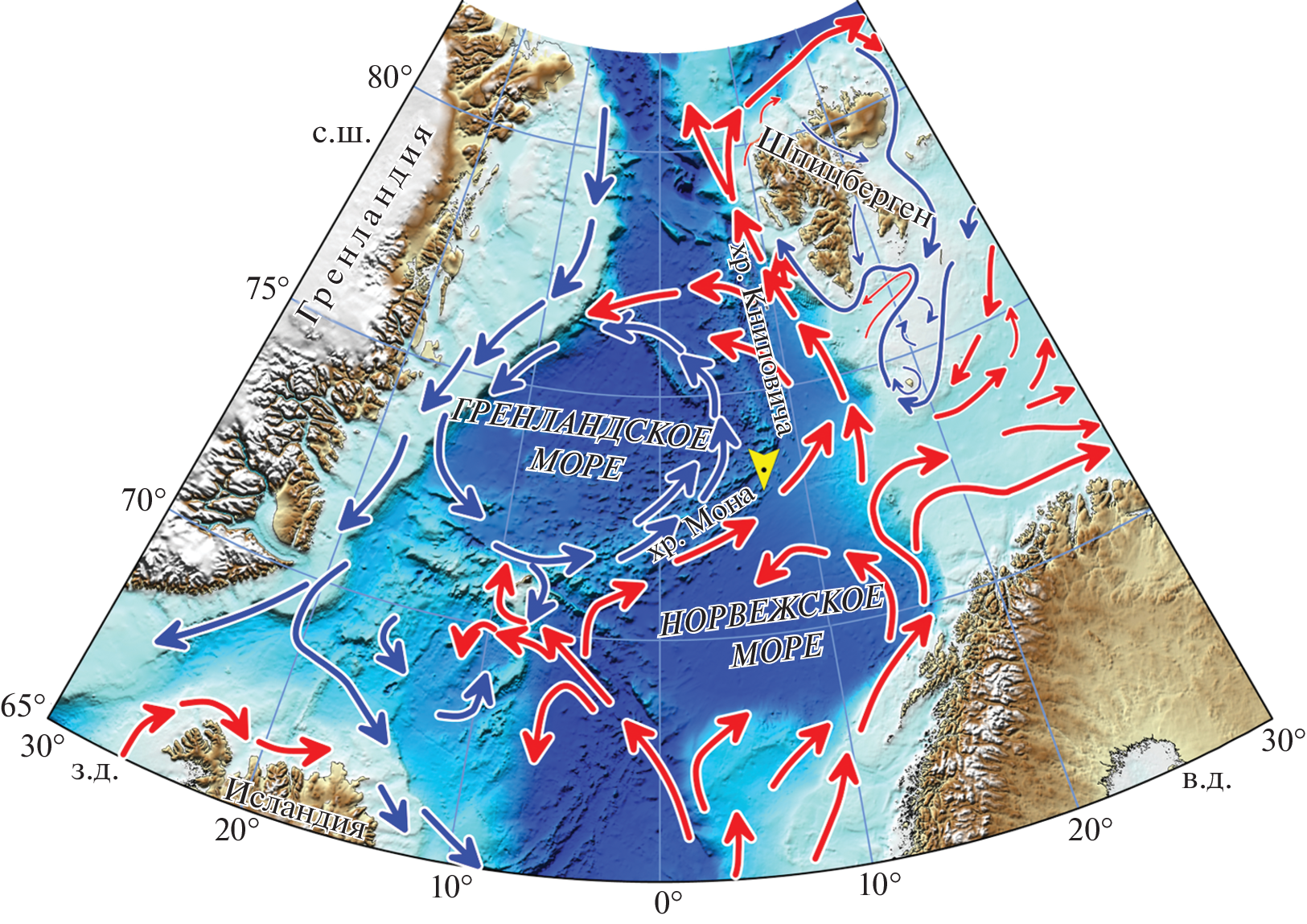 - Blindheim J., Østerhus S. The Nordic Seas, main oceanographic features // Geophysical Monograph-American Geophysical Union. 2005. V. 158. P. 11–37.