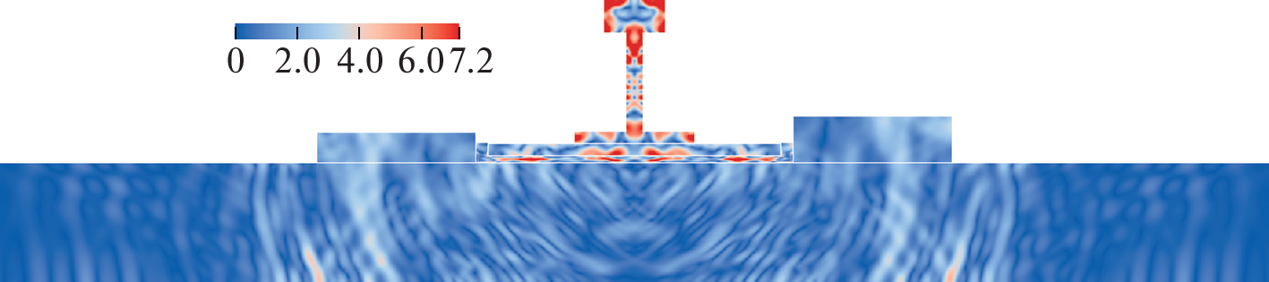 Целью исследования является применение сеточно-характеристического метода на структурированных сетках в различных задачах, связанных с железнодорожной безопасностью транспорта; получение результатов полного волнового моделирования с использованием данного численного метода и их анализ для лучшего понимания физических процессов, происходящих в условиях тяжеловесного и высокоскоростного движения на различных участках пути. К задаче исследования относится рассмотрение движения поезда по балластному и безбалластному мостовому полотну. В ходе компьютерного моделирования были получены и проанализированы различные волновые поля и динамические распределения давления и компонент тензора напряжений Коши при движении состава по железнодорожному пути. Произведена оценка времени, за которое происходит распространение волновых процессов в различных конструкциях моста. Полученные результаты дают представление о волновых явлениях при движении подвижного состава в зоне мостов и по железнодорожному пути в целом.