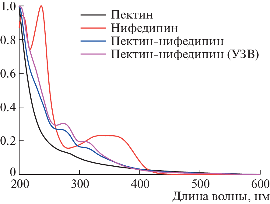 The formation of stable complexes of pectin polysaccharides with the hypotensive drug “Nifedipine” was confirmed by IR and UV spectroscopy, their stoichiometry was determined and the conditions of their production were optimized. Peculiarities of thermal decomposition of pectin and synthesized complexes with nifedipine were studied by TGA/DSC method. The results obtained are a scientific basis for the creation of a new water-soluble non-toxic dosage form of nifedipine, which will significantly expand the use of the drug in medicine.