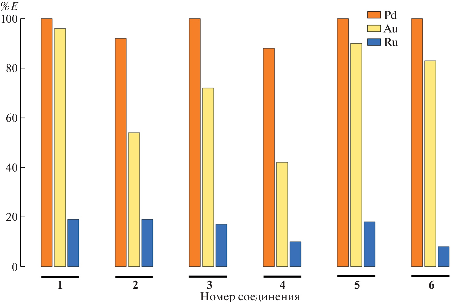 Dipinodiazafluorenes are hybrid nopinane-annelated heterocycles whose molecules include a heterocyclic core of 4,5-diazafluorene condensed with fragments of terpene hydrocarbon, capable of selectively extracting palladium (88−100%), gold (42−96%) and ruthenium (8−19%) by single extraction from acidic aqueous solutions (pH 1.2) containing complex mixtures of 3d-elements and precious metals.