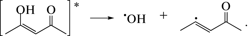 На примере ацетилацетона показано, что внутримолекулярная водородная связь существенно влияет на радиолитические превращения органических соединений, подавляя перенос протона от первичного катион-радикала к молекуле, а также способствуя разрыву С–ОН-связи в енольной форме. Вследствие этих эффектов основным тяжелым продуктом радиолиза при 295 К является 4-оксопент-2-ен-2-илацетат. В условиях кипения (413 К) водородные связи разрушаются, что приводит к преобладающему образованию 4-гидрокси-2-пентанона, который не обнаруживается при 295 К.