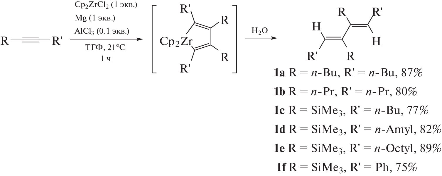 - Negishi E., Holmes S.J., Tour J.M., Miller J.A., Cederbaum F.E., Swanson D.R., Takahashi T. // J. Am. Chem. Soc. 1989. V. 111. P. 3336–3346. https://doi.org/10.1021/ja00191a035