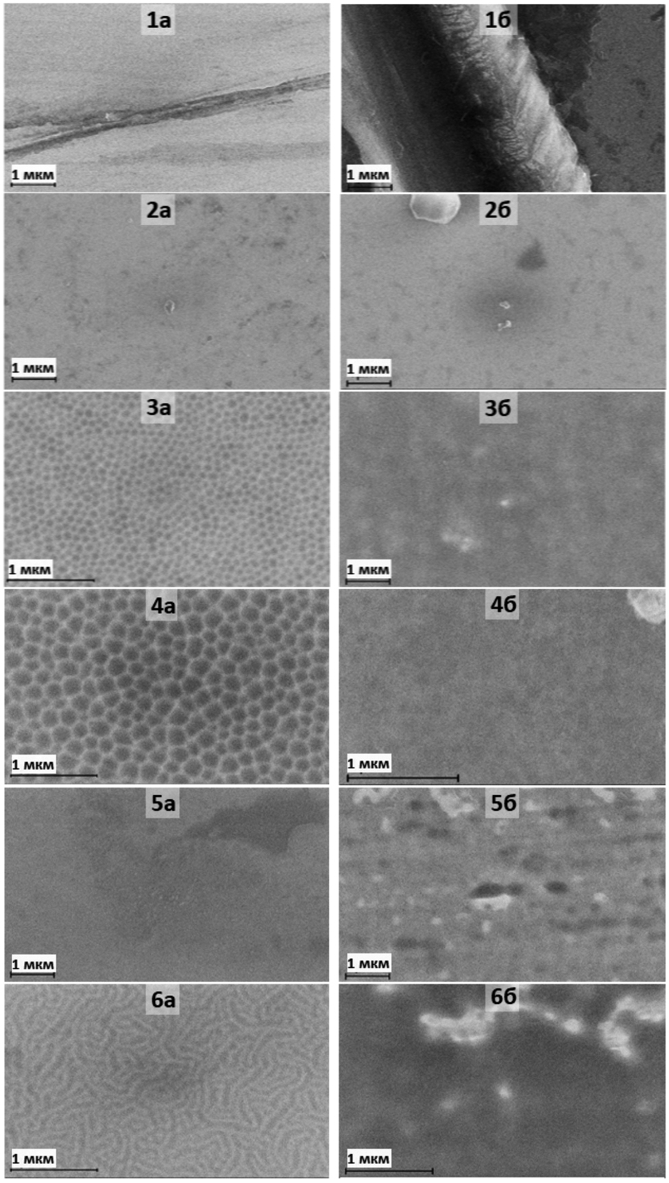 Условия обработки и описание морфологии поверхности представлены в табл. 1.