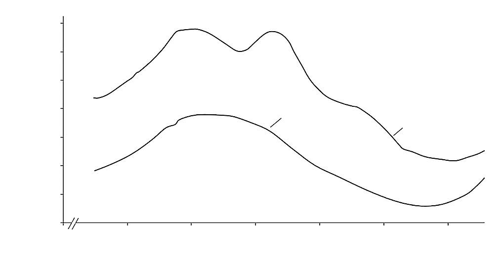 Если поверхность ВПС-48/7781 покрыта грунтовкой и эмалью, то в исходном состоянии при нагревании кроме αm-перехода в эпоксидной матрице обнаруживается еще αс-переход, которому соответствуют участок падения значения E ¢ (рис. 2, кривая 1) в области температур от 60 до 100°С и широкий пик E ¢¢ с вершиной при 80°C (рис. 2, кривая 2), является переходом из стеклообразного в высокоэластическое состояние системы грунт–эмаль.