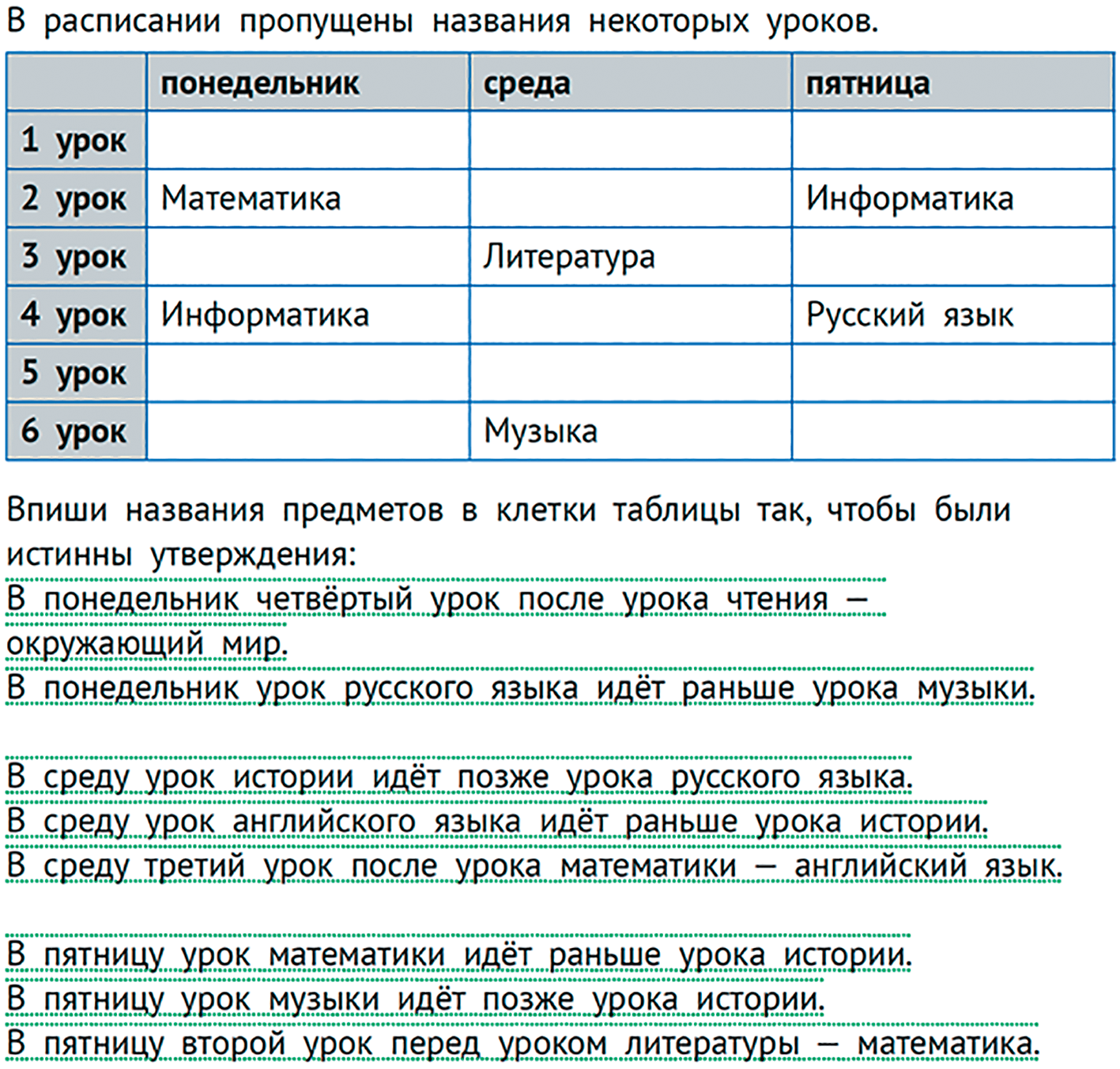 - Богомолова О.Б. Логические задачи // 4-е изд., испр. и доп. М.: БИНОМ. Лаборатория знаний, 2013. 277 с. ISBN 978-5-9963-1001-2.