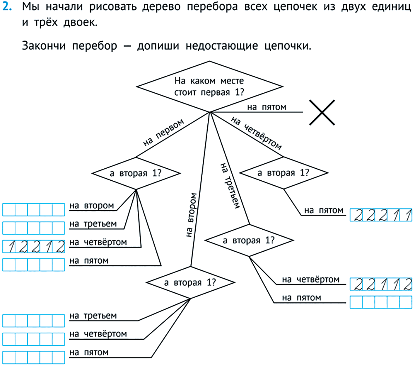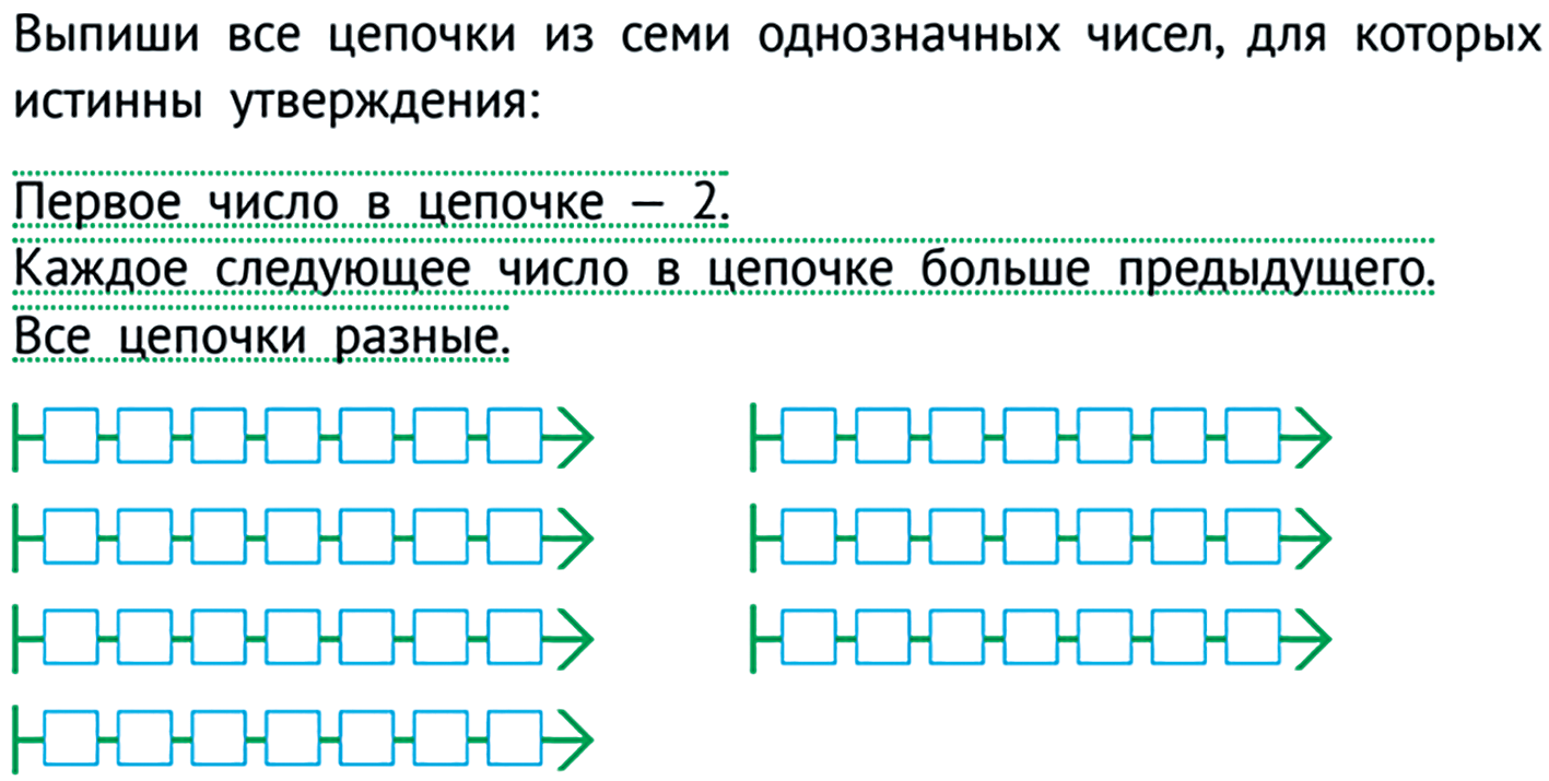 The paper is describing the class of educational problems from the course of mathematics and computer science for elementary school. This course has been implemented over the past decades by a team led by A.L. Semenov. In the problems it is required to find, build, list all objects that satisfy a certain system of conditions. The student conducts these activities in the visual world of the basic objects of discrete mathematics and computer science: strings (finite sequences of symbols), bags (multisets), tables, trees, and statements containing quantifiers. The connections of these problems with problems of computational combinatorics (“counting the number of options”), search problems of the theory of computational complexity, with “big ideas”, general cognitive strategies in their formation are considered. The content of education in our approach is more adequate to the context of the modern world.