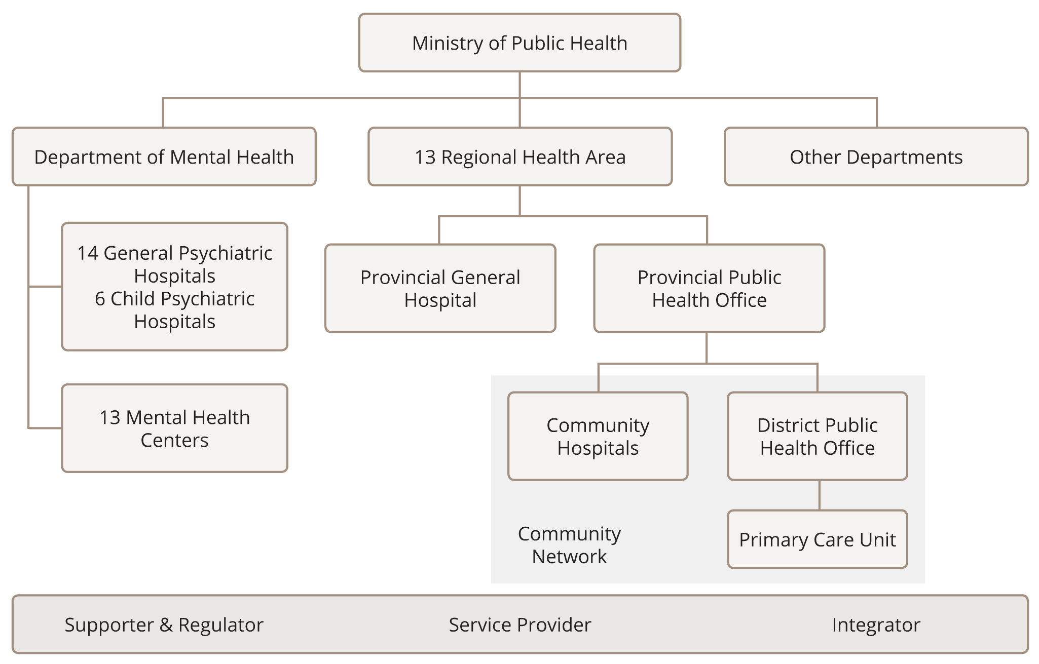After the 2012 health care reform, the role of the Department of Mental Health expanded to include the development of mental health policy and regulation of the mental health services sector at the provincial and district levels [16].
