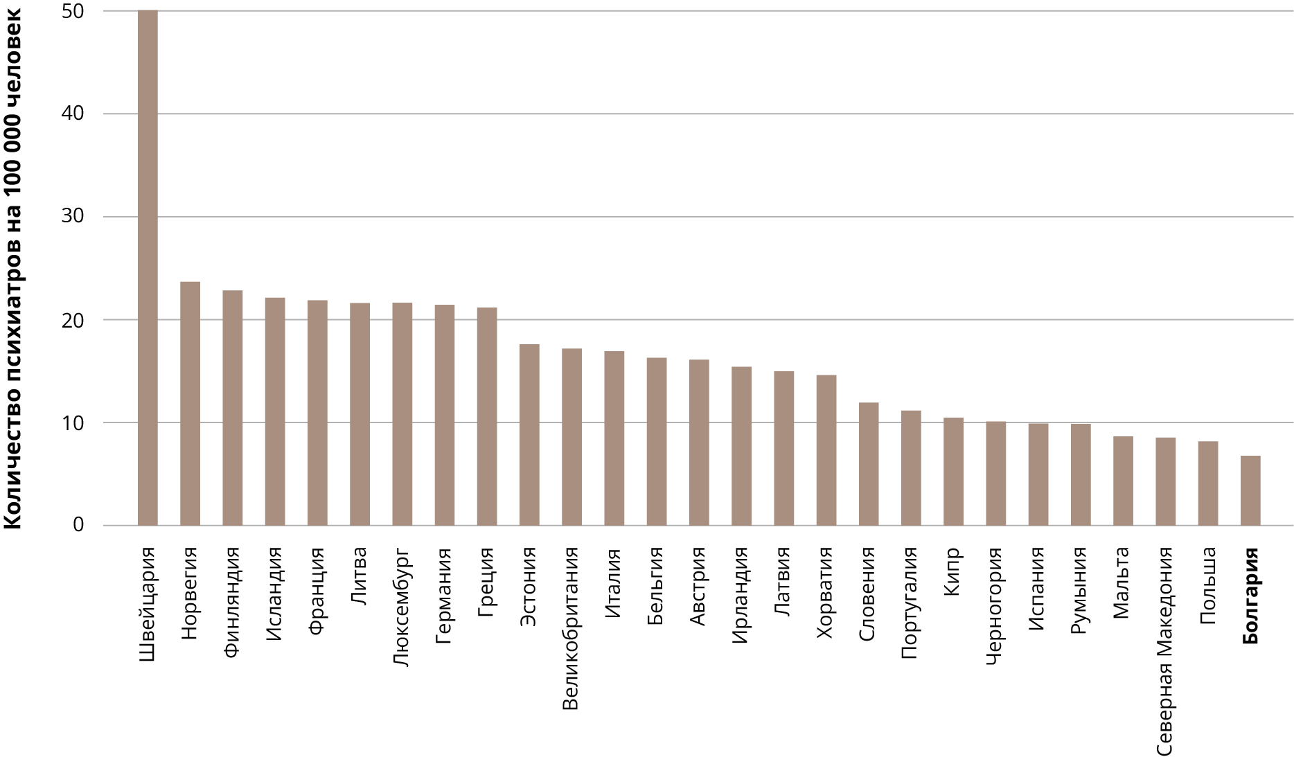 Compared with other countries in the European region, Bulgaria has an extremely diminished pool of human resources active in psychiatric practice (Figure 3).