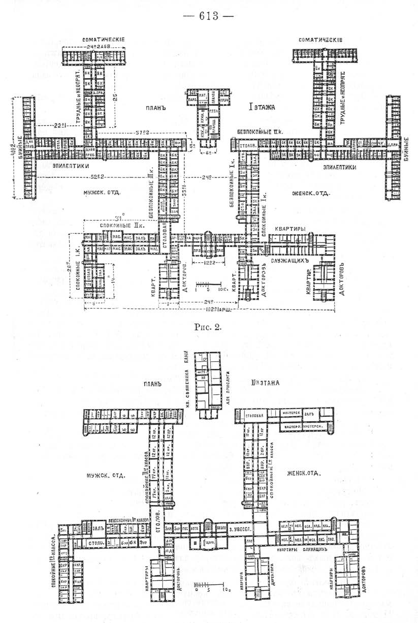 В то же время проект окружных психиатрических лечебниц стал первым опытом нового «психиатрического строительства». Он продвинул вперед не только медицинскую науку, но и гражданскую архитектуру. Методом проб и ошибок был найден баланс между масштабностью и рациональностью. Как показывает практика, принципы, использованные при планировке и организации работы окружных лечебниц, прошли проверку временем и не потеряли актуальности даже в наши дни.