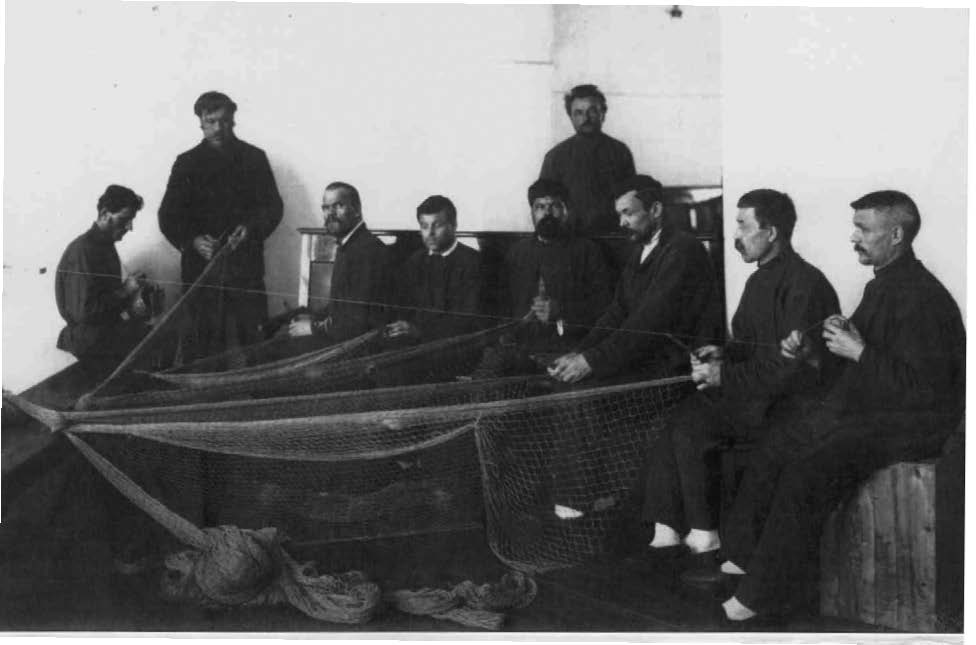 Директором Томской лечебницы был назначен Николай Николаевич Топорков, руководивший до 1907 года Виленской окружной больницей. Несмотря на то, что профессор Н.Н. Топорков обладал опытом управления крупным учреждением, многие проблемы ему пришлось решать буквально «с нуля» (рис. 7). Томская лечебница обслуживала огромную по площади территорию, многие больные проделывали долгий путь и попадали в нее крайне истощенными — они нуждались не только в психиатрической помощи, но и в общесоматическом лечении. Неудивительно, что летальность пациентов в первый год работы больницы была довольно высокой — 13,5%. Вторую проблему представлял собой наплыв криминальных больных. Н.Н. Топорков и другие врачи лечебницы развернули широкую трудовую терапию: были открыты сапожная, портняжная, переплетная, корзиночная, ткацкая, гончарная, веревочная мастерские (рис. 8). На площади больше 400 гектаров выращивали сельскохозяйственные культуры, содержали домашних животных. В подсобном хозяйстве были даже конюшни для разведения племенных лошадей. Интересный факт: в 1910 году лечебница принимала участие в губернской выставке садоводства и огородничества, и ее продукция получила бронзовую медаль4. Трудотерапия не только оказывала положительное влияние на состояние душевнобольных, но и открывала перспективу для пациентов — с освоением нового ремесла у них появлялся шанс лучше адаптироваться в обществе. Довольно широко в лечебнице практиковалось обучение грамоте. Также Н.Н. Топорков уделял внимание организации досуга: для пациентов устраивались праздники и танцы, причем в духовом и балалаечном оркестрах на этих мероприятиях играли служащие больницы (рис. 9). Несмотря на сложности, Томская окружная лечебница уже в первые годы своей работы могла гордиться результатами. Так, в 1909 году она представила свой альбом и схемы на III Съезде психиатров, в 1911 году приняла участие в Международной гигиенической выставке в Дрездене, а в 1913 году показала свои достижения на Всероссийской гигиенической выставке в Петербурге, где была награждена малой золотой медалью.