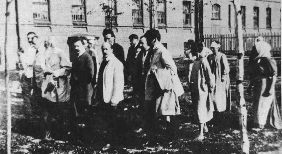 В 1903 году состоялось торжественное открытие Виленской (впоследствии территория Литвы) окружной психиатрической больницы. На тот момент это была самая большая в России психиатрическая лечебница, рассчитанная на тысячу коек. Двести пациентов лечились за счет государства, остальные платно, таким образом, содержание лечебницы окупалось. Все принципы организации окружных лечебниц соблюдались здесь в полной мере: ограничивались стеснение и изоляция больных, спокойным пациентам прогулки разрешались даже за пределами территории, в больнице организовывались игры и концерты. К зданию примыкал огромный парк и огороды, работы в которых использовались как один из вариантов трудотерапии для пациентов (рис. 3). Надо сказать, что первый директор Виленской лечебницы Николай Васильевич Краинский не только разумно руководил больницей, но активно отстаивал идею крупных психиатрических заведений. Выступая на IX Пироговском съезде в 1904 году, он сказал: «Большие психиатрические больницы в научном и организационном отношении имеют значительное преимущество по сравнению с малыми, лучшие условия для сортировки различных групп больных: в них легче найти необходимые в научной психиатрии пособия, и легко достижим взаимный обмен мнениями и сведениями». [10]