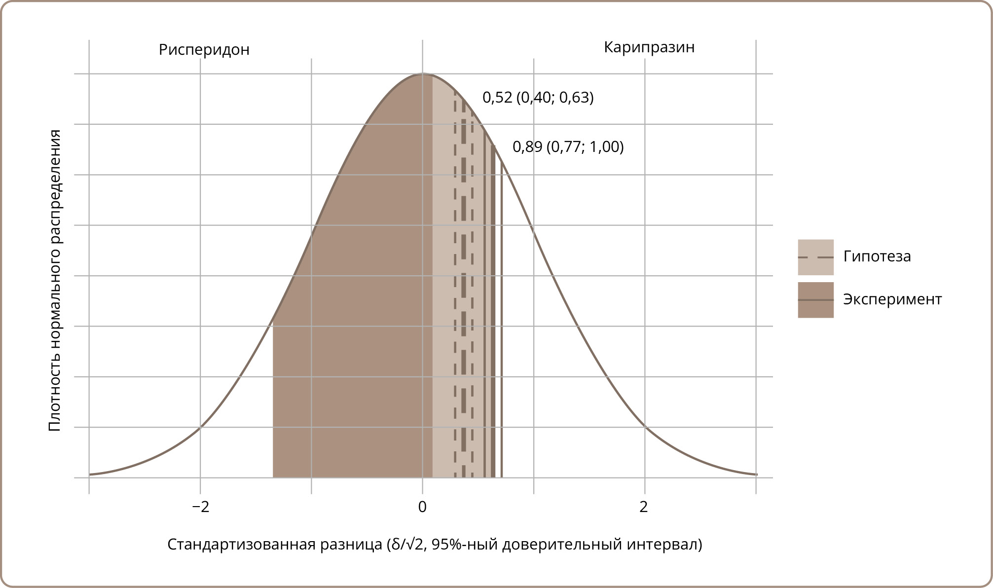 Рисунок 1. Стандартизированное распределение разницы между препаратами.
