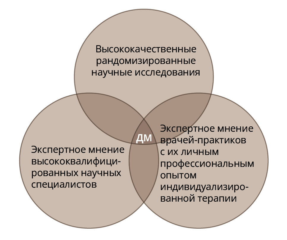 It must be underlined that the principle of Cochrane evidence1 is interpreted more broadly in the West than by the majority of its Russian adherents. Many Western proponents of RCT (EBM) consider evidence-based medicine to be centered on the patient’s personality as a whole, rather than on fragmentary symptom-related indicators tested in biological experiments. From this point of view, evidence-based medicine appears to be a process of providing medical care that involves the accumulation, interpretation, and integration of reliable, important, and reasonably applicable evidence that serves to improve the quality of clinical decisions regarding the treatment of a particular patient [26].