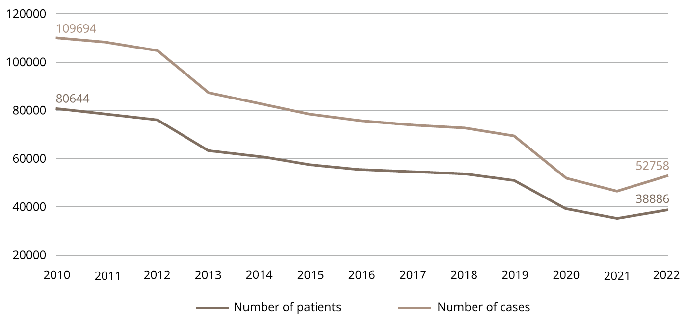 Figure 1. Psychiatric outpatient turnover in the health care system of Hungary: 2012–2023.