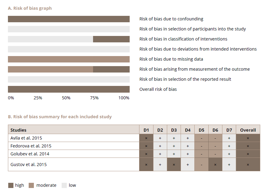 The quality of the selected studies was assessed in accordance with the Cochrane Handbook for Systematic Reviews of Interventions [107] using the Cochrane Risk of Bias tools [113]. Researchers independently considered potential sources of bias in the study results. Any disagreements regarding the assessment of potential biases were resolved through discussion or consultation with other co-authors.