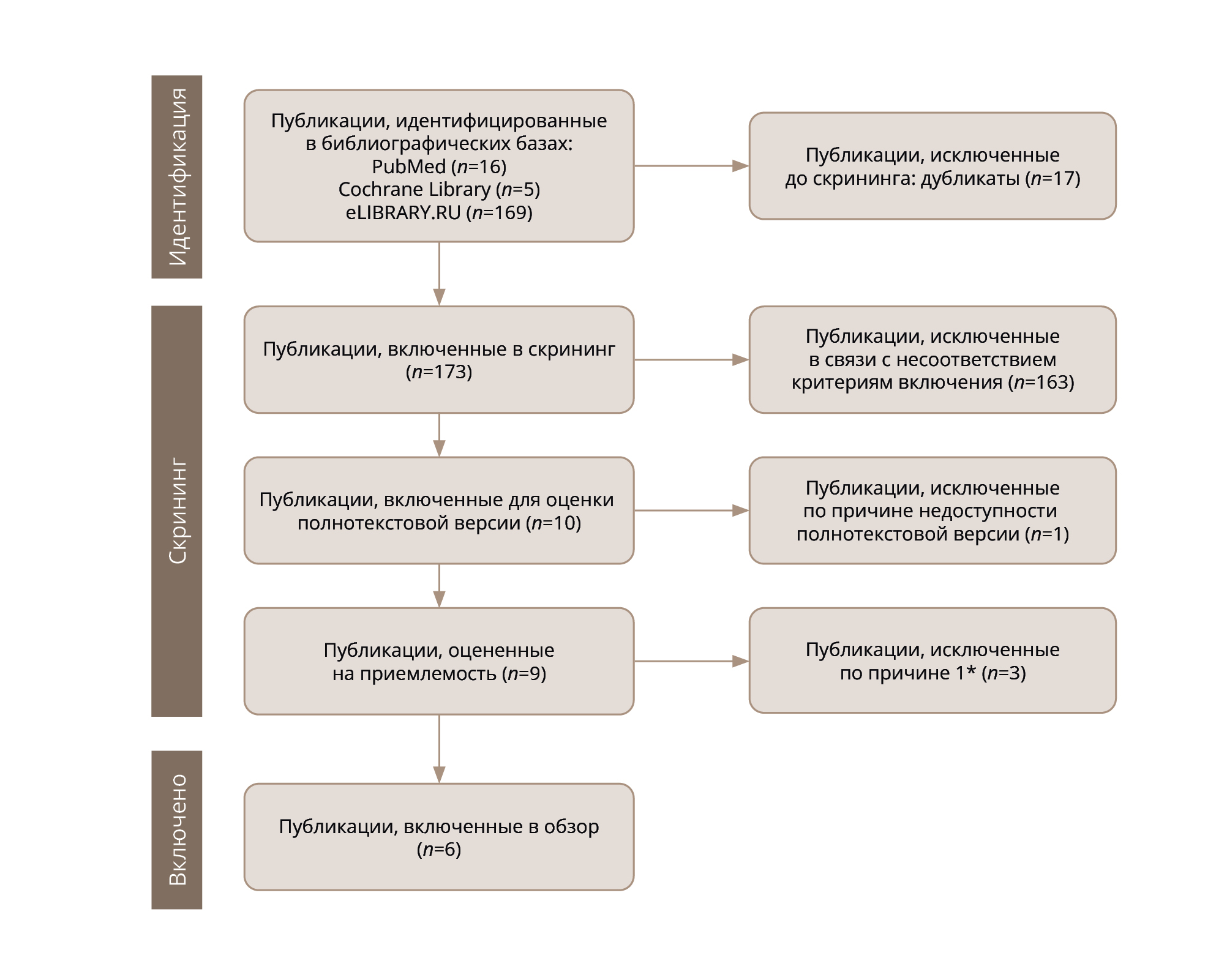Figure 3. Flow chart demonstrating the selection process of comorbid depression and epilepsy studies. Note: *— did not meet eligibility criteria (diagnosis). Source: Klimanova et al., 2024