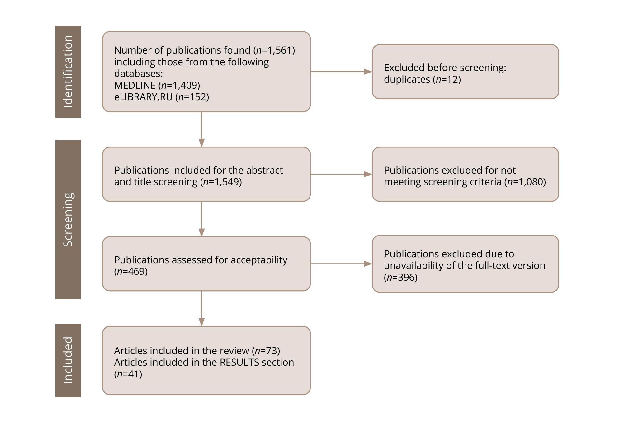 The search was conducted in the electronic databases MEDLINE and eLIBRARY.RU. The search was carried out in December 2024.