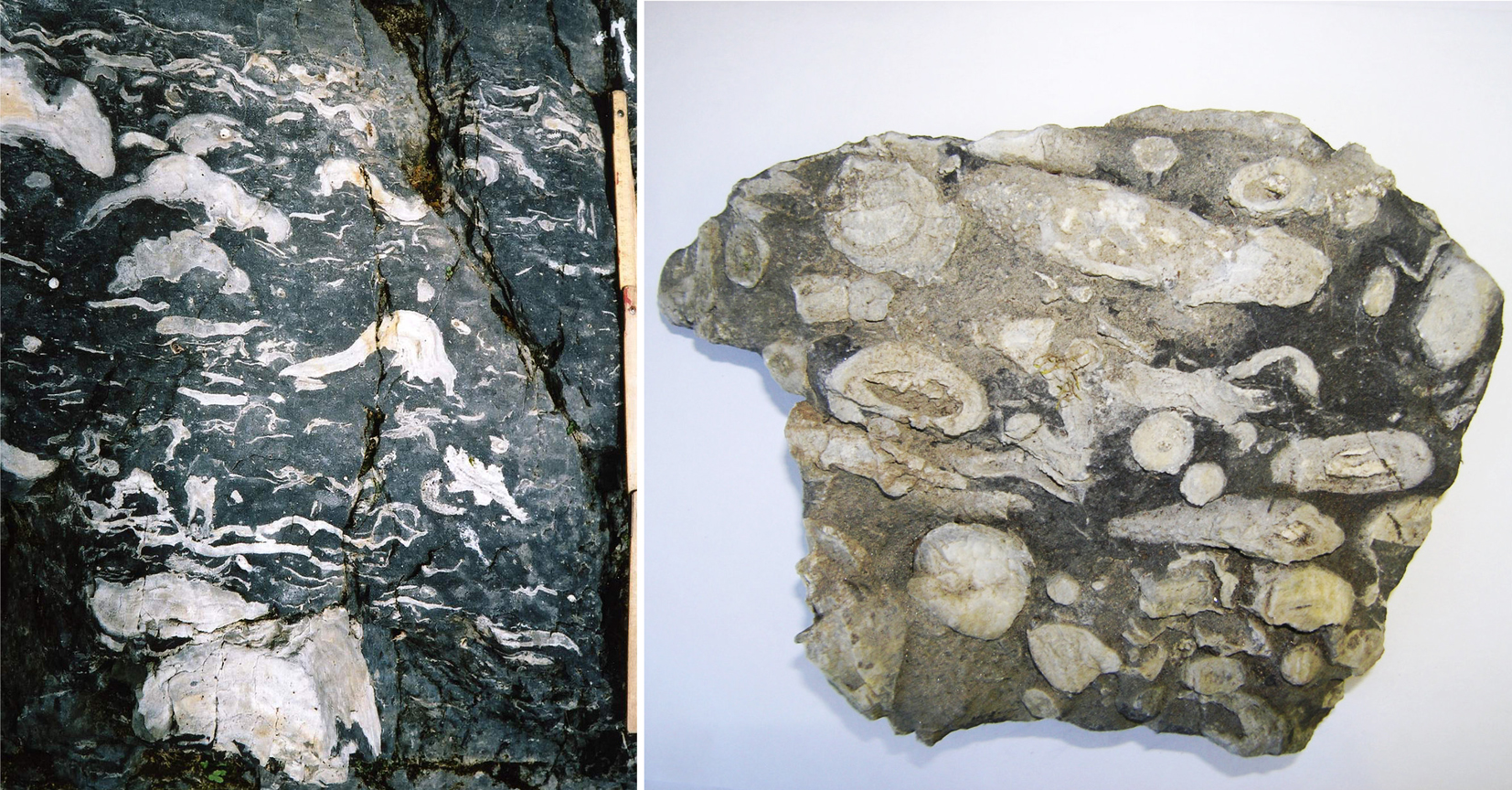 Рис. 3. Силурийские породы со строматопороидеями Ecclimadictyon explanatum Bogoyavl. на Приполярном Урале (р. Кожым, обн. 229)