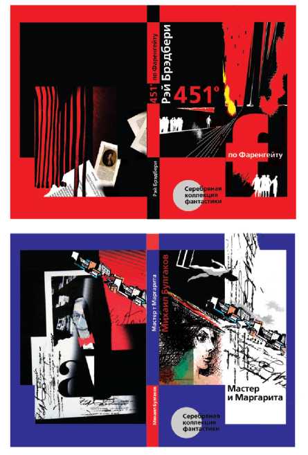 Так, работая над обложками книг серии «Серебряная коллекция фантастики», Маркаров отказывается от монохромности своей излюбленной графики и погружает читателя в буйство красок, среди которых неизменно царит одна – главная. Так, переплет книги Рея Брэдбери «451 градус по Фаренгейту» полыхает огненно-красным.