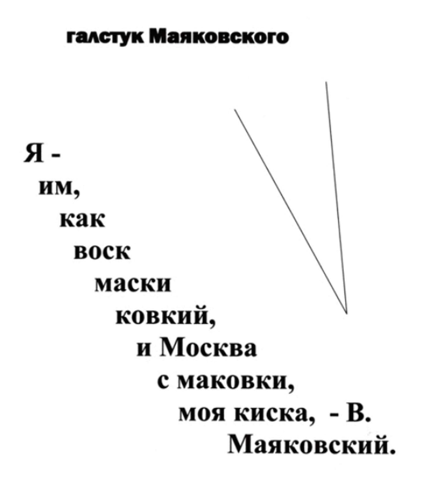 Осмелимся предположить, что иллюстрацией такого рода бивалентности лирического субъекта у С. Литвак может служить, например, анаграмматическая лесенка «Галстук Маяковского»: в версии 2011 года (см. ил. 4) к тексту прикреплена фотография поэтессы – аналогично с примерами, приведенными нами ранее, однако в сборнике «Агынстр» 2020 года (см. ил. 5) авторский снимок в стихотворении отсутствует.