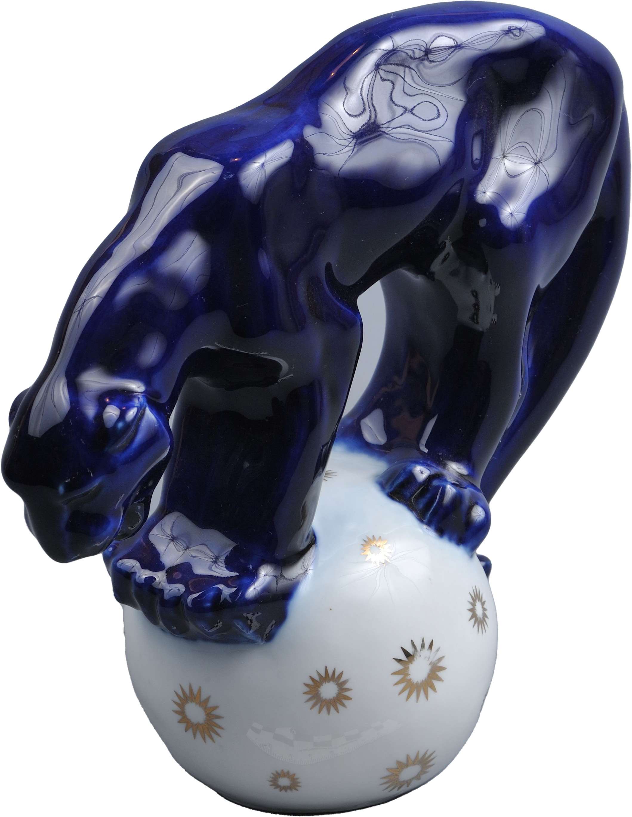 Ил. 6. Вайнштейн-Машурина С.И. (автор скульптуры). Скульптура «Пантера на шаре». Завод «Пролетарий». Новгород. 1957. Фарфор, крытьё, золочение. Новгородский музей-заповедник. НГМ КП 44021 КФ-1253