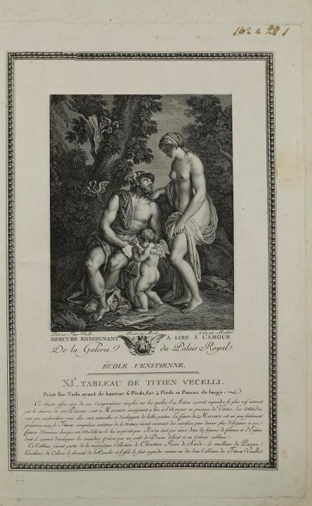 Ил. 6. Гравюра Жака Буйера (Jacques Bouillard, 1744–1806) по оригиналу Тициана «Меркурий, обучающий Амура чтению». 1808. Офорт, резец. Москва. ГМИИ им. А.С. Пушкина