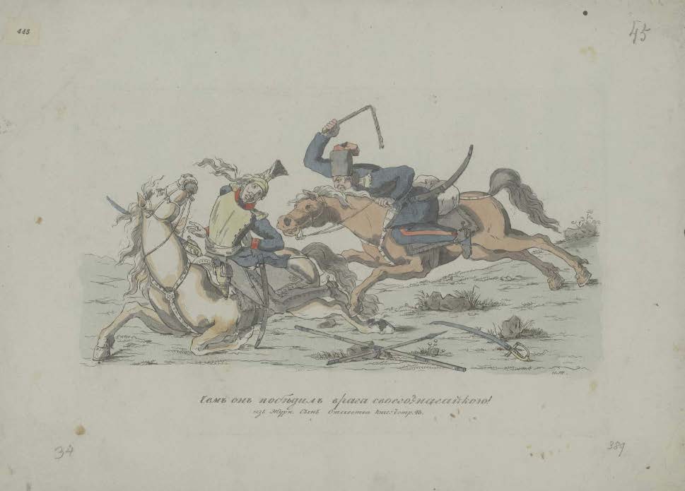 1. «Чем он победил врага своего? Нагайкою! Из журнала Сын. Отеч. книг. 7, стр. 43» И.И. Теребенева (рис. 1).