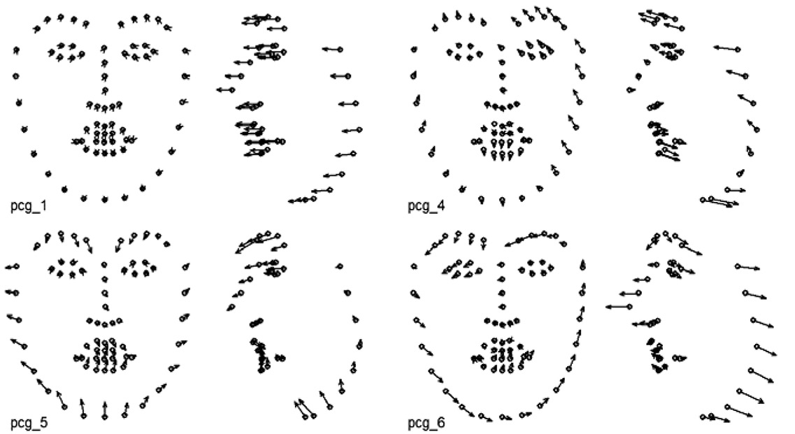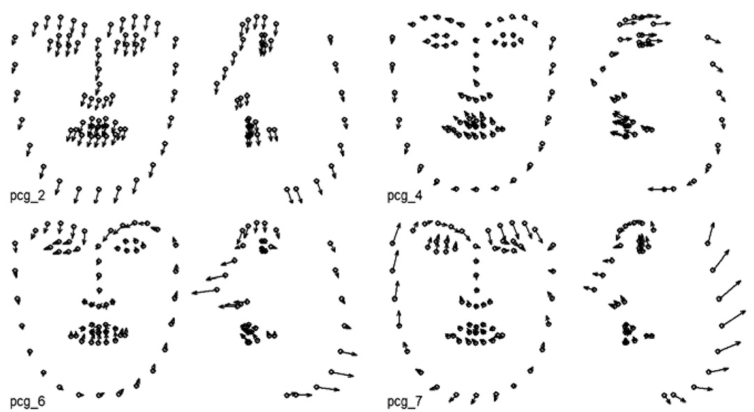 4) анализ нагрузок эмпирических главных компонент, вычисляемых на основе координат ключевых точек для объединенного набора данных.
