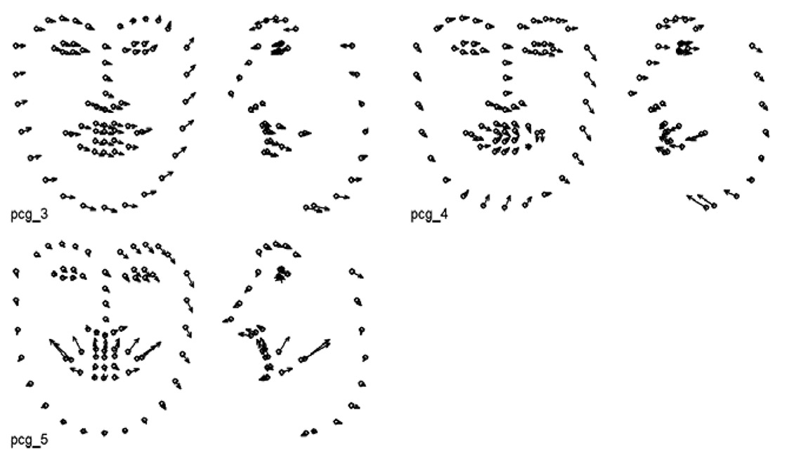 На уровне анализа обобщенных главных компонентов целостный динамический паттерн содержит от одной до 5-ти главных компонент. Содержательный анализ вклада каждой из компонент требует решения дополнительной задачи: выполнение парциальных реконструкций динамики лица, описываемых комбинацией заданных главных компонентов.
