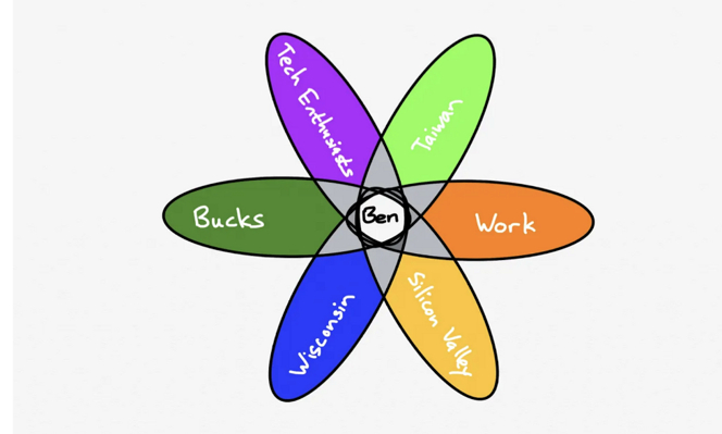 Рис.2. Визуализация множественных идентичностей Бена Томпсона (Thompson, 2020)