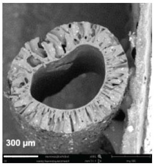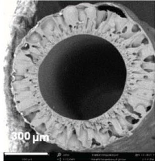 The produced membranes were soaked in distilled water rinse bath for 12 hours to remove residual solvents and to complete the phase separation. Then, one part of the hollow fiber membranes was immersed in a 30 % glycerol aqueous solution for 24 hours and then dried for 48 hours. The other part of the membranes was dried without treatment with a glycerol solution.