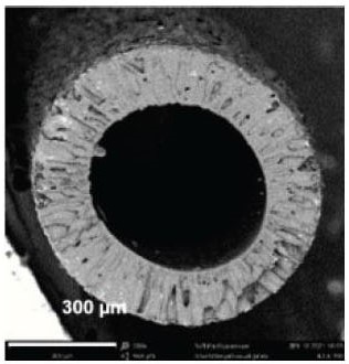 Fig. 4. SEM images of hollow fiber membranes after IR pyrolysis at 700 °C