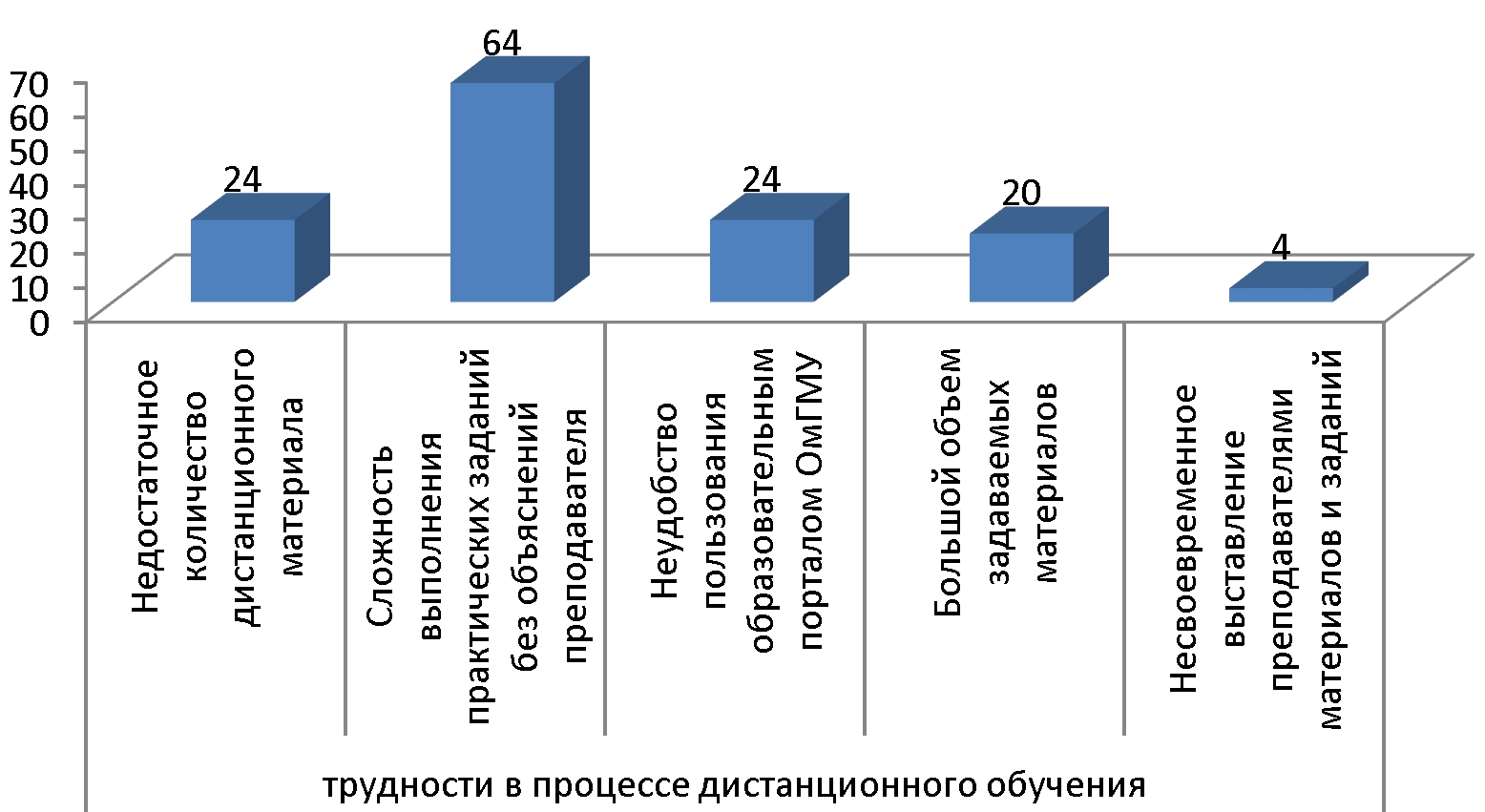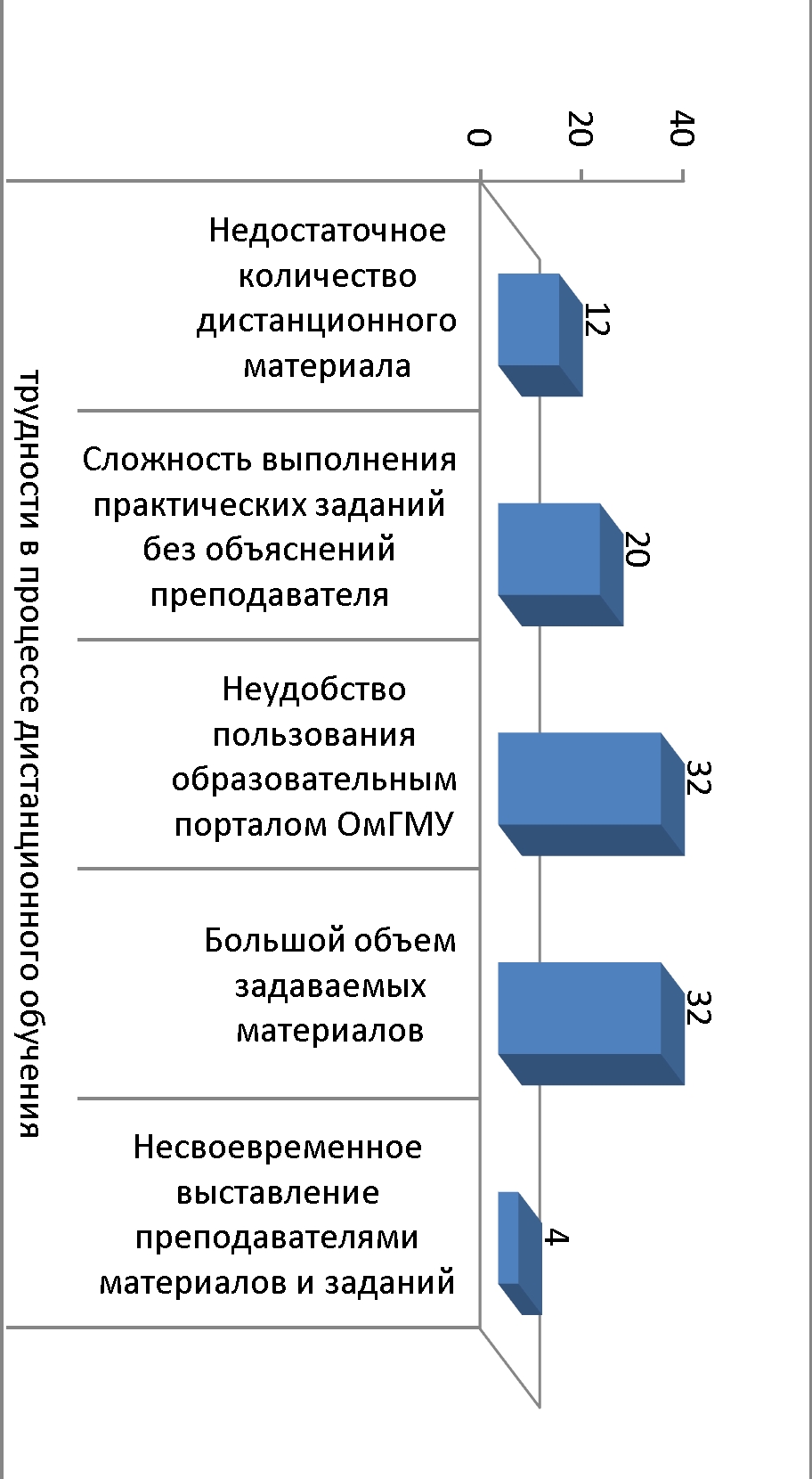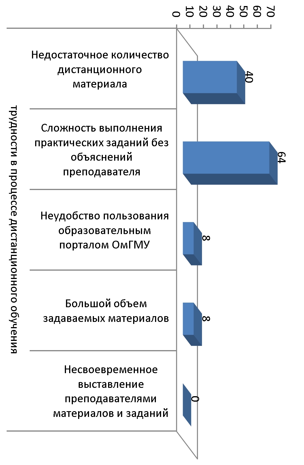В качестве основных трудностей в процессе дистанционного обучения студенты медико-профилактического факультета выделили: неудобство пользования образовательным порталом ОмГМУ, а также большой объем задаваемых материалов.