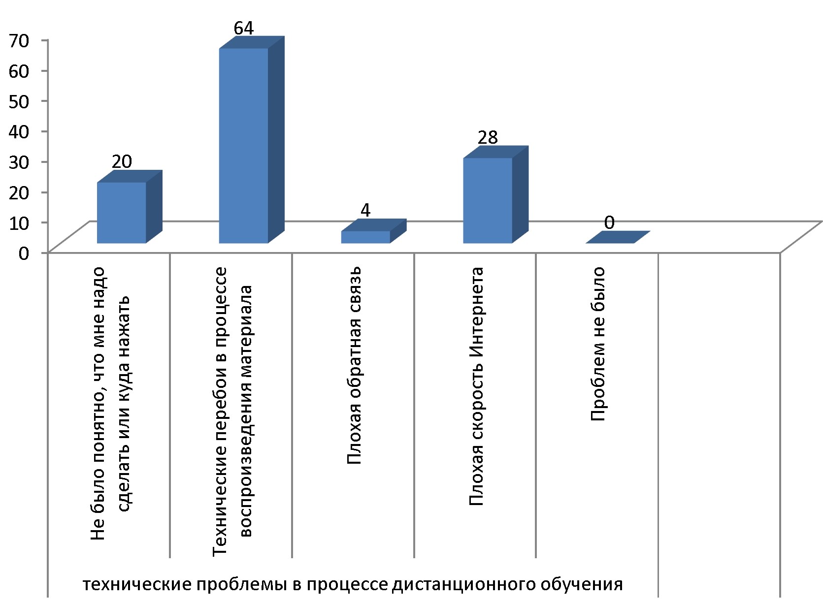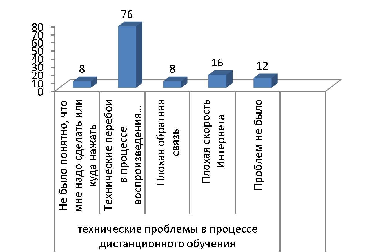 На рисунках 3-6 представлены основные трудности, с которыми столкнулись студенты в процессе обучения в дистанционном режиме, в том числе технического характера.