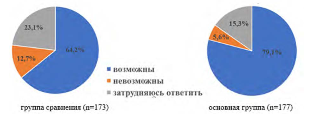 При ответах на остальные вопросы (№7,9,10,12) не получено статистически достоверных различий, при этом, во всех случаях отмечается долевой рост корректных ответов.
