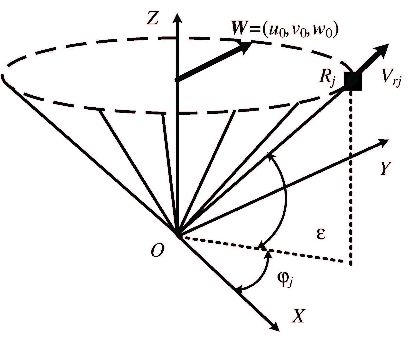 Трехмерный вектор скорости ветра определяется своими компонентами , , , которые являются его проекциями на оси , , соответственно. Будем предполагать, что в пределах области измерений скорость ветра является постоянной величиной.