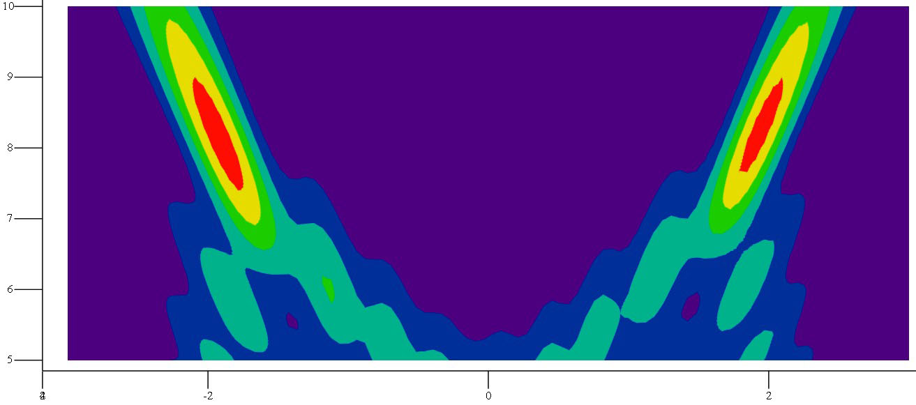 Рис. 6. Пространственное распределение энергии электромагнитного поля при расстоянии между точками фокусировки 6 м