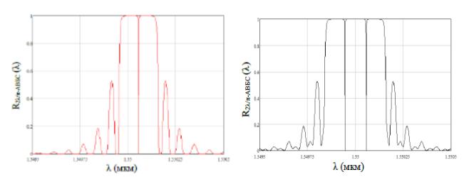 Рис. 10. Спектры компонент (l+l/p)-АВБС при изменении наведенного показателя преломления: l/p-ВБР компонента (а); дописанная к ней слева l-ВБР компонента