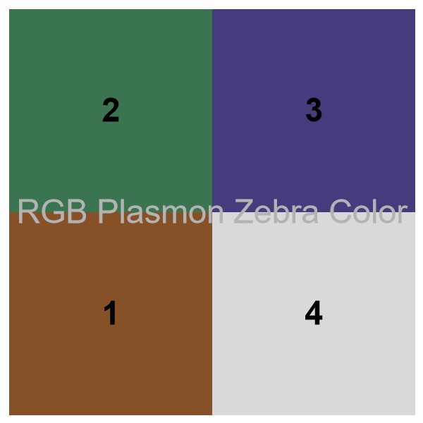 This plasmon zebra (PZ) system is shown in Fig. 1. SP being excited in x MathType@MTEF@5@5@+= feaahGart1ev3aaatCvAUfeBSjuyZL2yd9gzLbvyNv2CaerbuLwBLn hiov2DGi1BTfMBaeXatLxBI9gBaerbd9wDYLwzYbItLDharqqtubsr 4rNCHbGeaGGj0Jf9crFfpeea0xh9v8qiW7rqqrFfpeea0xe9Lq=Jc9 vqaqpepm0xbba9pwe9Q8fs0=yqaqpepae9pg0FirpepeKkFr0xfr=x fr=xb9adbaqaaeGaciGaaiaabeqaamaabaabaaGcbaGaamiEaaaa@3904@  direction, which is perpendicular to the PZ strips, reflects from edges of a strip. It can also jump from one strip to the neighboring strips. That is SP propagates in the transversal direction ( x direction in Fig. 1). The phase speed of the transversal SP depends on the PZ parameters. Therefore its wavevector q MathType@MTEF@5@5@+= feaahGart1ev3aaatCvAUfeBSjuyZL2yd9gzLbvyNv2CaerbuLwBLn hiov2DGi1BTfMBaeXatLxBI9gBaerbd9wDYLwzYbItLDharqqtubsr 4rNCHbGeaGGj0Jf9crFfpeea0xh9v8qiW7rqqrFfpeea0xe9Lq=Jc9 vqaqpepm0xbba9pwe9Q8fs0=yqaqpepae9pg0FirpepeKkFr0xfr=x fr=xb9adbaqaaeGaciGaaiaabeqaamaabaabaaGcbaGaamyCaaaa@38FD@  can be fitted to an arbitrary value by varying the width, thickness of the metal strips as well as by change the gap between strips. The reflectance has maximum(s) at the resonance(s). Being illuminate by natural light PZ ascribe the color in reflection corresponding to the frequency of the plasmon resonance.