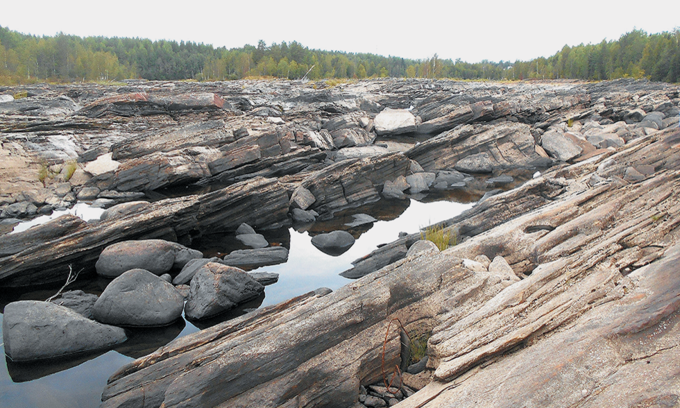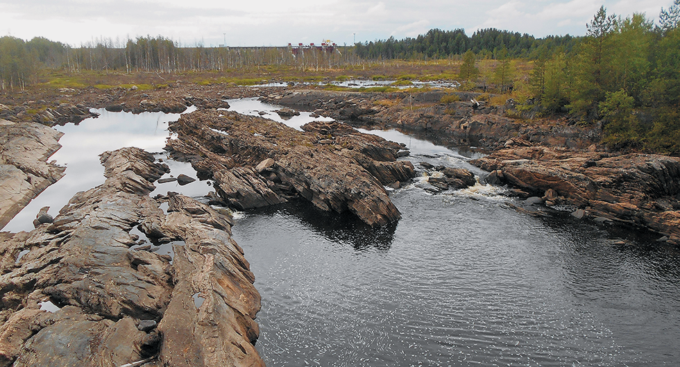 Until the end of the Late Pleistocene, the modern river valleys of most of Scandinavia remained buried under the cover of continental ice. The rivers of the region, including the Karelian ones, are distinguished by their geological youth, having formed as fluvial complexes only in the Holocene. The young age, combined with the strength of the crystalline rocks of the Baltic Shield, has affected the fact that the rivers here are characterized by the lack of development of the longitudinal profile. At the base of the thresholds, at which the flow acquires the character of rapid, the processes of formation of miniature scaffolds develop in places. A similar hydraulic situation developed at the front of the degrading glacier. The lower reaches of dams of hydraulic stations are also favorable for a powerful impact on the rock bed. Numerous traces of violent deep erosion, accompanied by the phenomena of indiscriminate erosion and hydrodynamic cavitation, can be found on the kilometer-long sections of the exposed rock bed of semi-mountain streams drained during hydraulic development.